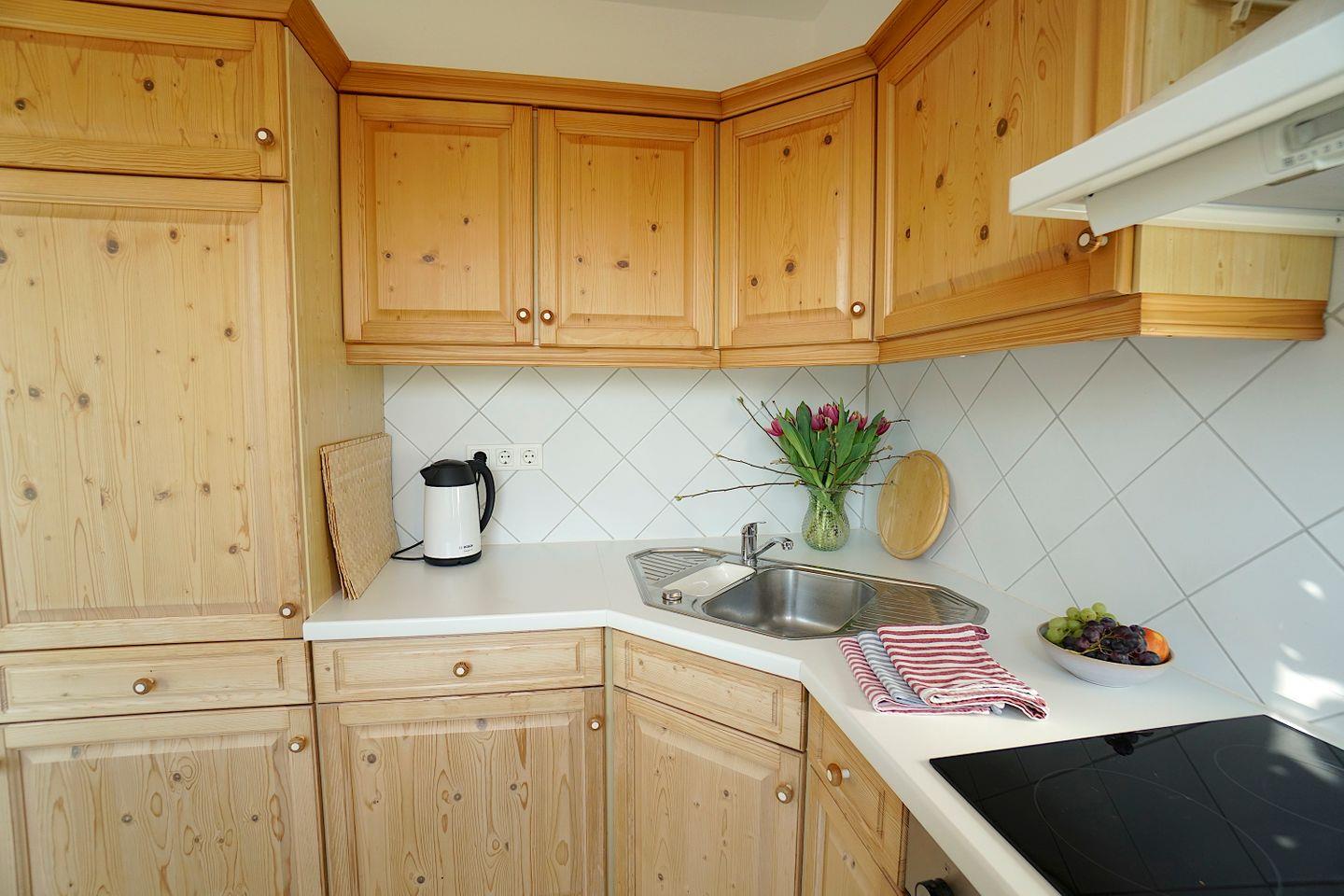 Die Wohnung ist mit WLAN, Fernseher mit digitalem Kabelanschluss und Radio ausgestattet. Die geschlossene Küche bietet alles, was man braucht: Ceranfeld, Backofen, Mikrowelle, Kühlschrank mit Gefrierfach, Frenchpress, Wasserkocher sowie Geschirr und Küchenutensilien.
