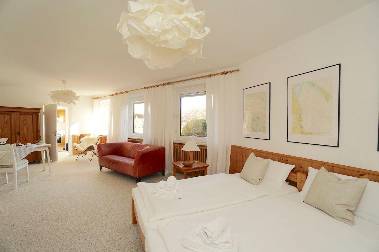 Ein großzügiger Wohn-, Ess- und Schlafbereich, ein Bad mit Dusche und eine helle, geschlossene Küche bieten alles für entspannte Tage am Meer. Draußen wartet eine Terrasse im traumhaften Garten mit Blick ins Grüne. Strand und Ostsee erreichst Du nach etwa 500 Metern, das nächste Restaurant nach rund 600 Metern. WLAN, TV und Radio sind natürlich da.