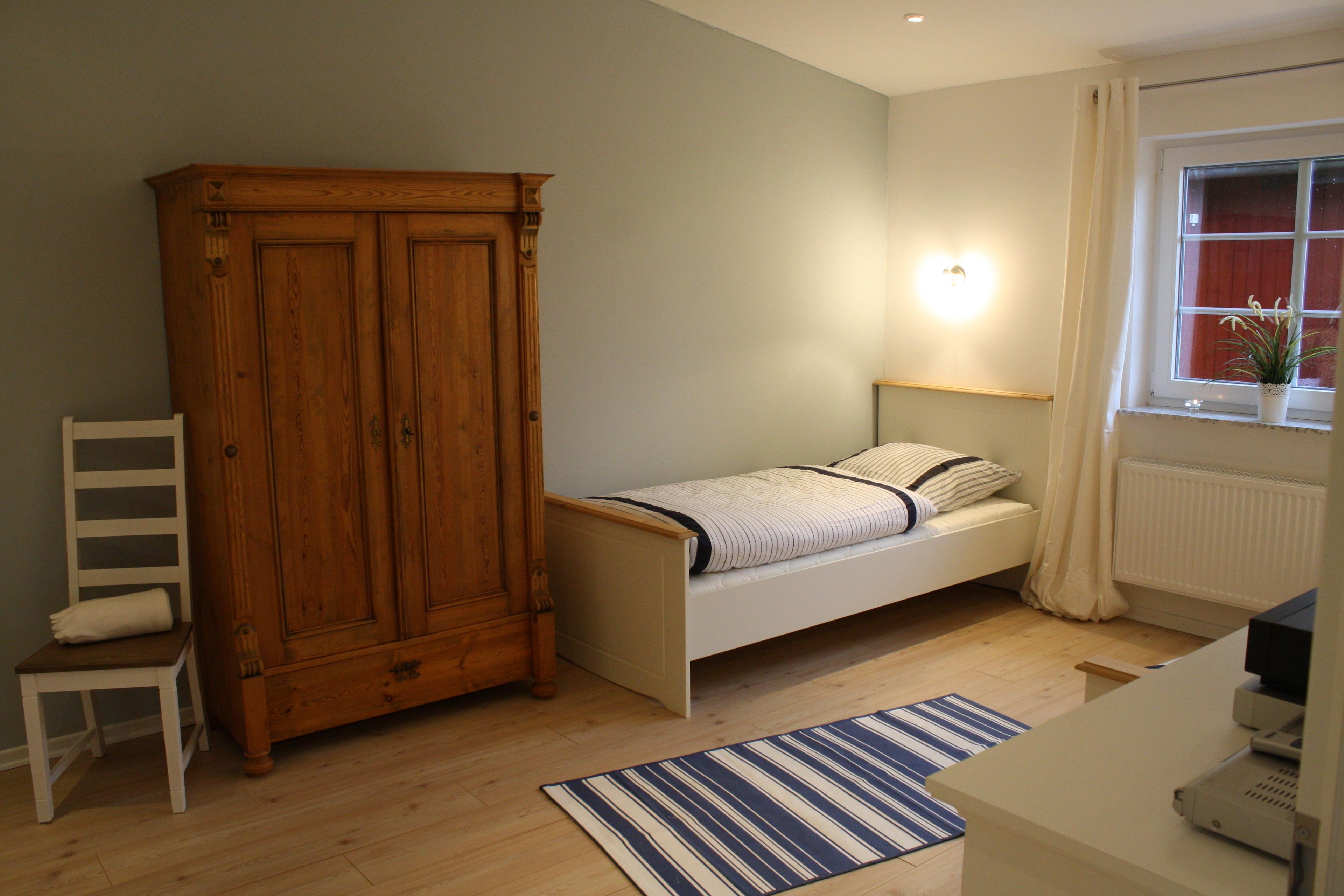 Unser Rödhus hat zwei Schlafzimmer. Das eine ist ausgestattet mit einem schönen Doppelbett, Kleiderschrank und einem Ganzkörperspiegel, das andere mit zwei gemütlichen Einzelbetten und einem variablen Tagesbett. Ein Kleiderschrank, eine Schubladenkommode sowie ein Fernsehgerät und ein DVD-Player gehören in dieses Zimmer. Im Ferienhaus gibt es 2 Bäder: Ein gemütliches Duschbad mit Fenster, Eck-Runddusche, Rainshower-Kopfbrause, großem Waschtisch mit Spiegel, Kosmetikspiegel, Haartrockner und Toilette sowie ein Bad mit Fenster, Toilette, Handwaschtisch mit Spiegel, Haartrockner, Kosmetikspiegel und einer Waschmaschine.