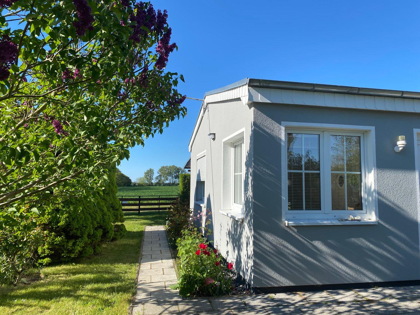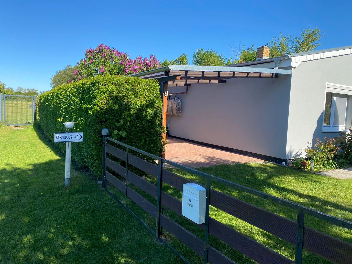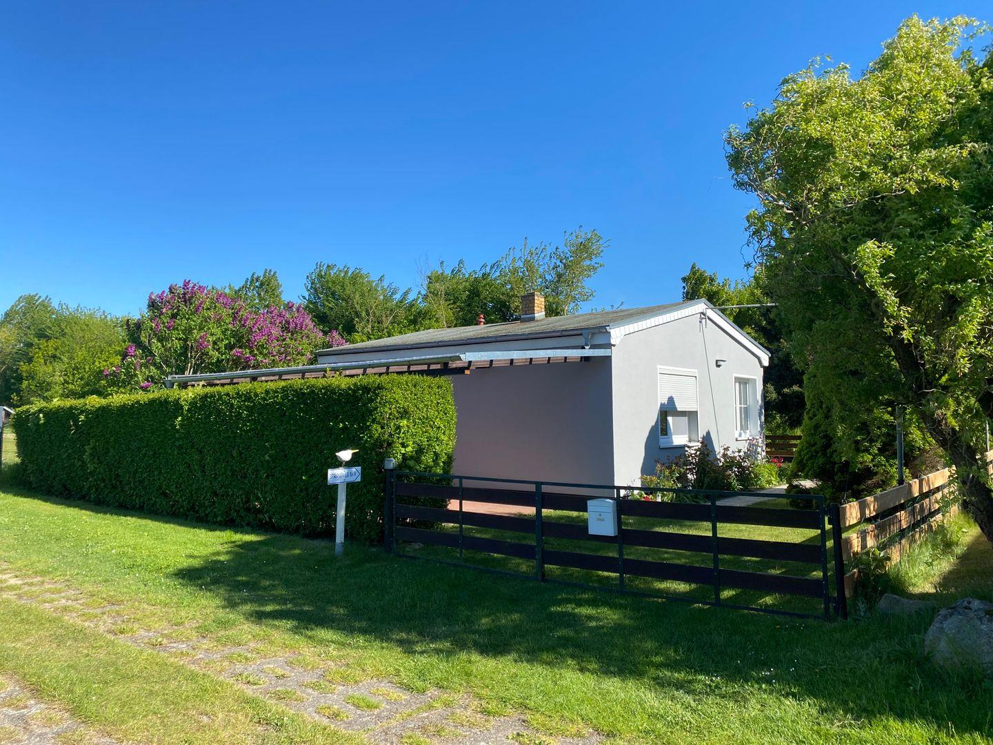 Strandnaher, lichtdurchfluteter Bungalow für zwei Personen mit Garten und Terrasse an der Ostsee bei Warnemünde.
