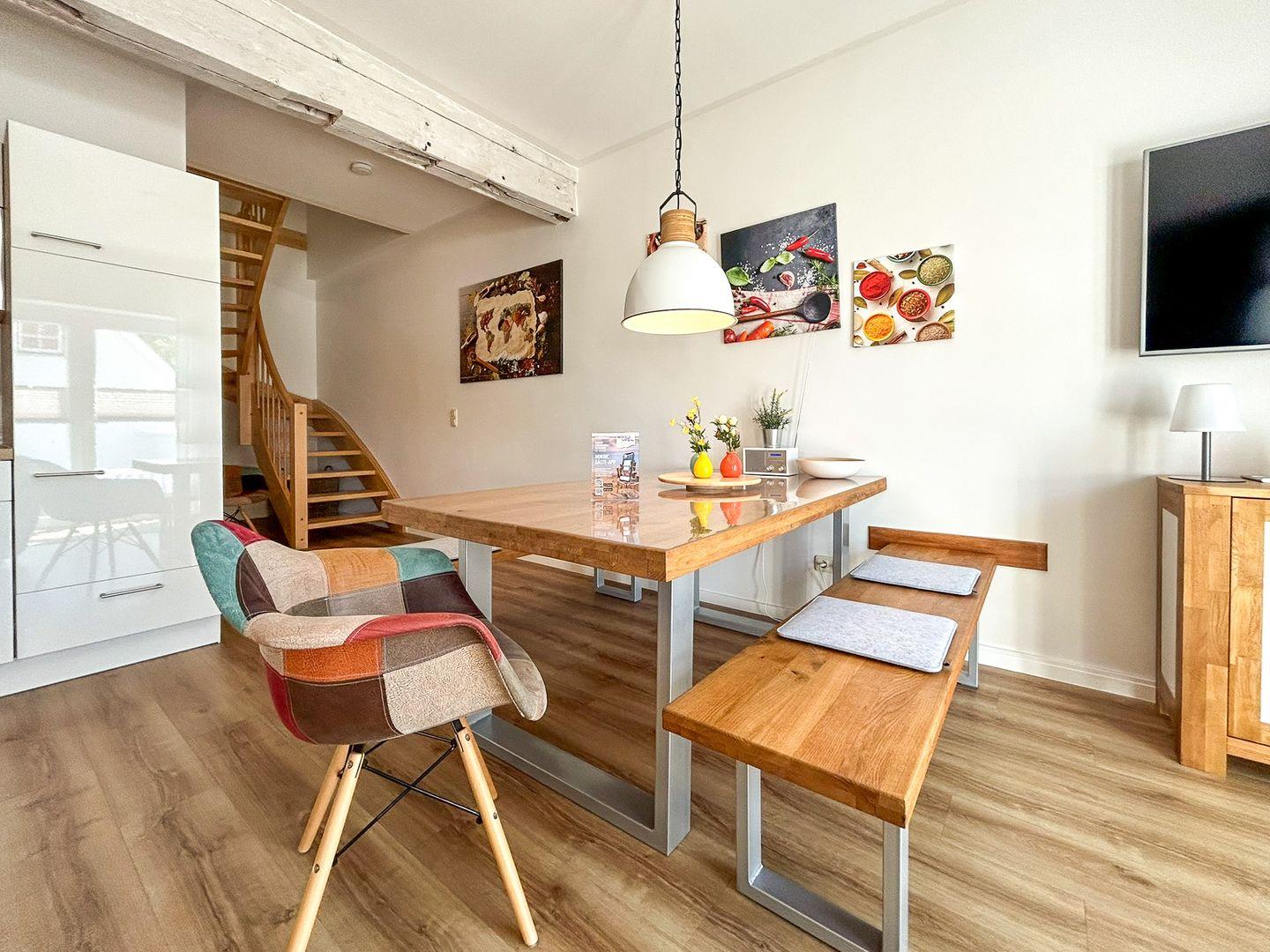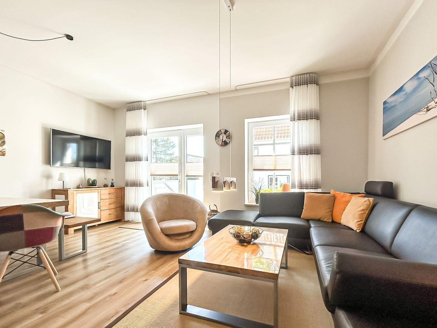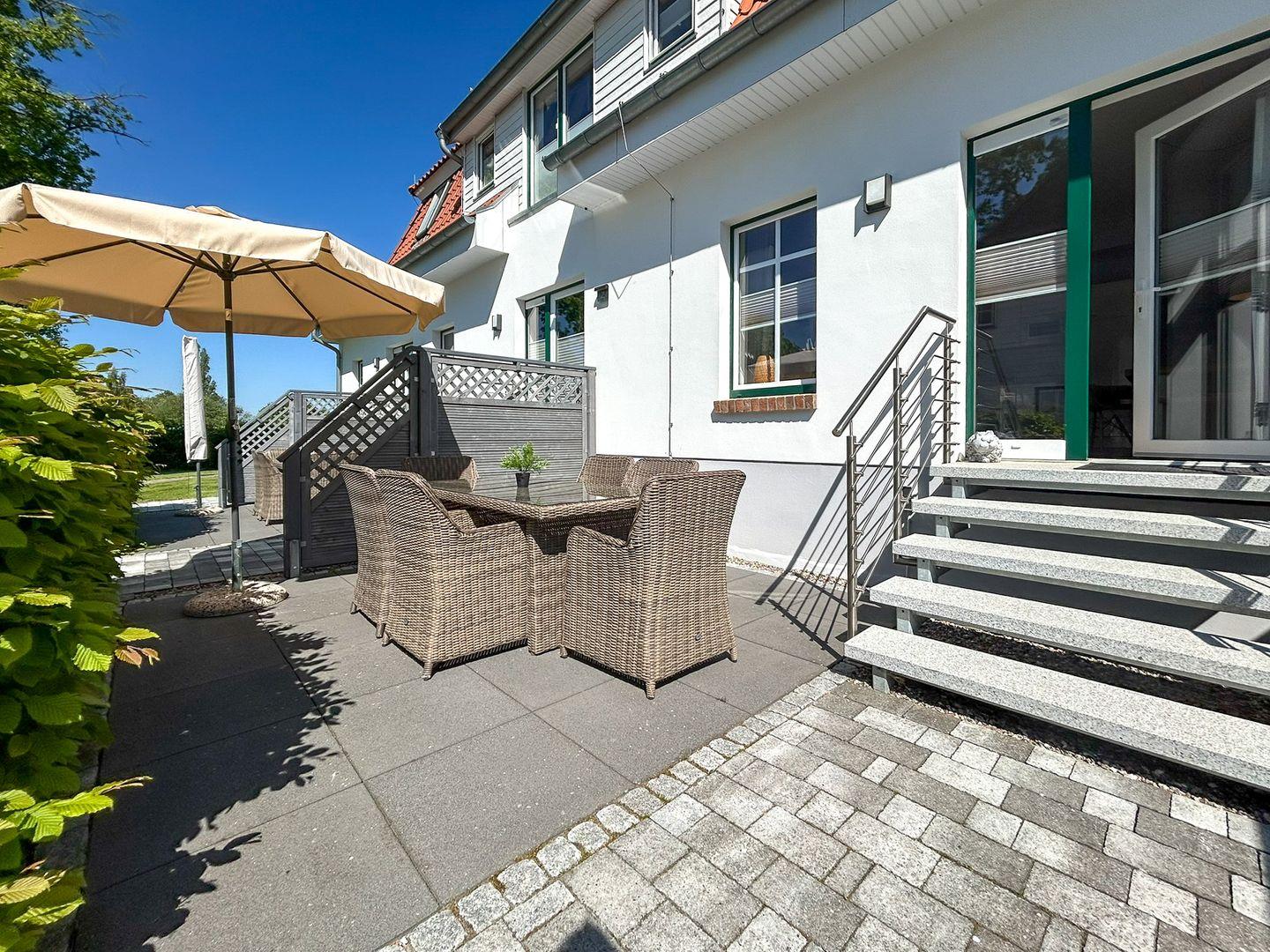 Moderne Maisonette-Ferienwohnung in ruhiger Lage nahe Naturstrand und Steilküste mit Terrasse und kostenfreiem WLAN.