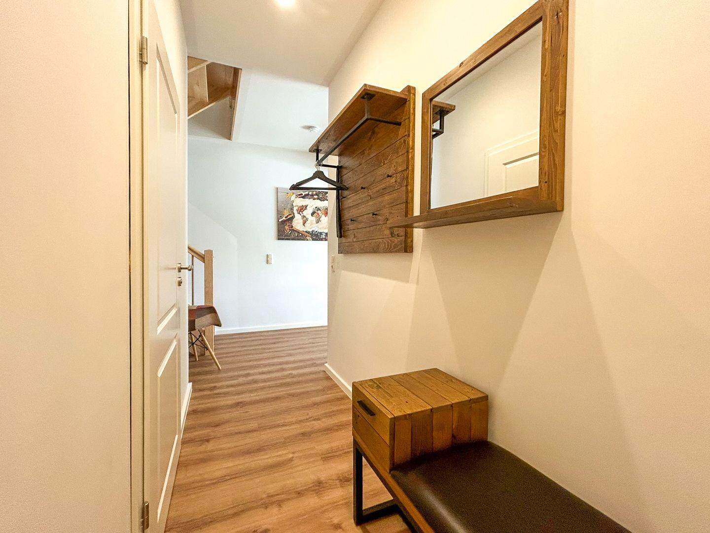 In der Flurnische befindet sich die Garderobe mit Platz zum Ablegen eurer Jacken und Taschen. Die gesamte untere Etage ist mit einer Fußbodenheizung versehen, die in den kalten Monaten eine wohlige Wärme bietet.