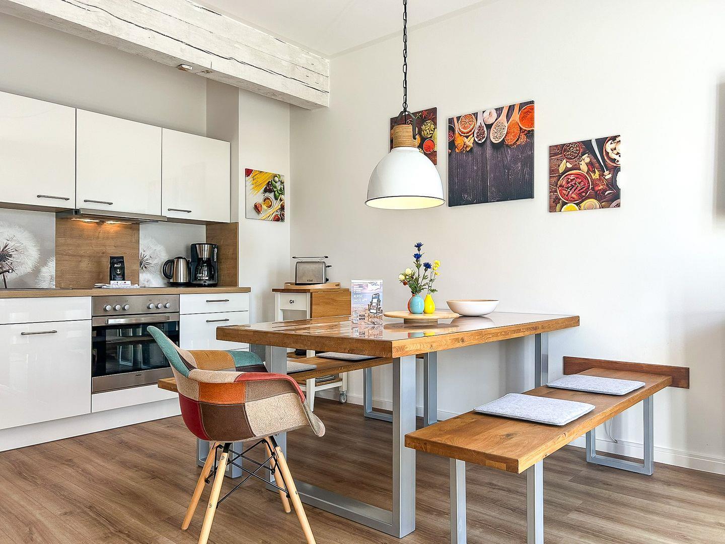 Auf drei Etagen vereint die stilvolle Ferienwohnung einen großzügigen Wohnraum mit gemütlichem Essbereich und schicker Einbauküche, zwei Schlafzimmer, ein Duschbad sowie Gäste-WC und einen Abstellraum. In dieser ca. 80 m² großen Wohnung kannst du somit eine wunderbare Familienzeit, die dir alle Annehmlichkeiten bietet, verbringen.