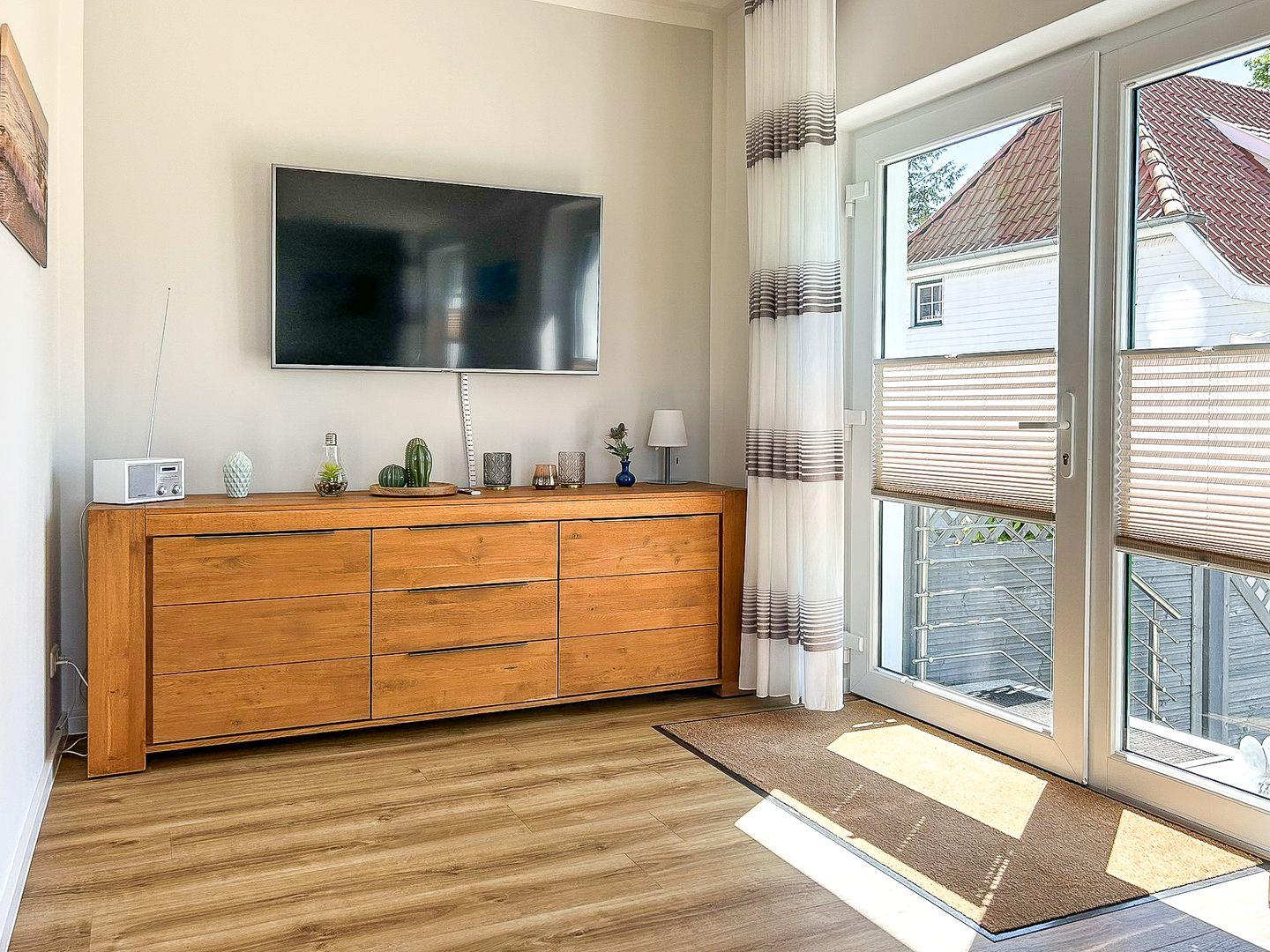 Auf drei Etagen vereint die stilvolle Ferienwohnung einen großzügigen Wohnraum mit gemütlichem Essbereich und schicker Einbauküche, zwei Schlafzimmer, ein Duschbad sowie Gäste-WC und einen Abstellraum. In dieser ca. 80 m² großen Wohnoase kannst du somit eine fantastische Familienzeit, die dir alle Annehmlichkeiten bietet, verbringen.