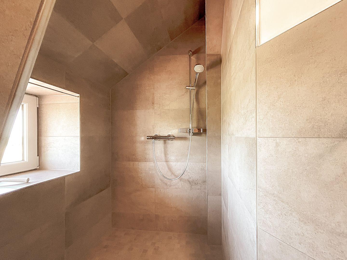 Die gesamte Wohnung ist schick und stilvoll eingerichtet und lässt augenblicklich ein Wohlfühlgefühl aufkommen. Im Erdgeschoss dieses individuell geschnittenen Apartments befindet sich weiterhin das modern ausgestattete Gäste-WC. Außerdem ist ein Abstellraum vorhanden, in dem ein Staubsauger und weitere Utensilien des täglichen Bedarfs untergebracht werden können.