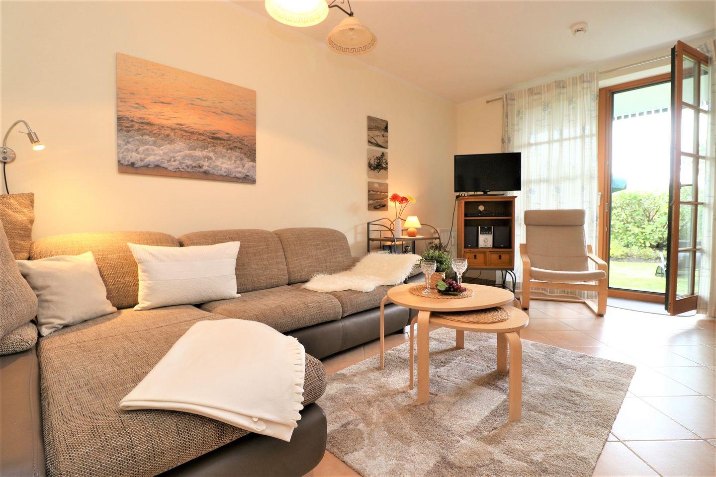 Charmantes Erdgeschoss-Appartement mit Terrasse und Boddenblick in Wieck für entspannte Urlaubstage.