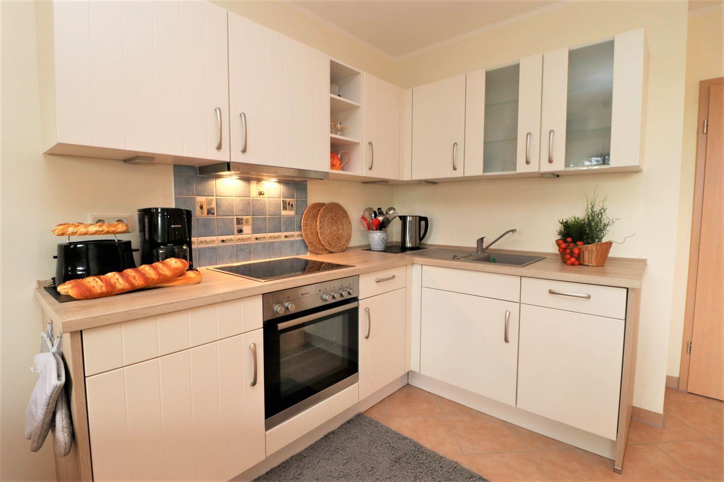 Dieses charmante Appartement im Erdgeschoss bietet auf 43 m² ausreichend Platz für bis zu 3 Personen und ist der perfekte Rückzugsort für entspannte Urlaubstage. Die Süd-West-Terrasse gewährt Ihnen einen Blick auf den Bodden, umgeben von viel Grün – eine wahre Oase der Ruhe. Mit etwas Glück können Sie hier sogar das eine oder andere Reh am Ufer des Boddens beobachten. Das Wohnzimmer ist mit viel Liebe zum Detail eingerichtet und verfügt über eine bequeme Schlafcouch, die bei Bedarf zusätzlichen Schlafplatz bietet. Die integrierte Küchenzeile ermöglicht es Ihnen, gemeinsam Mahlzeiten zuzubereiten und sich wie zu Hause zu fühlen. Im Schlafzimmer erwartet Sie ein gemütliches Doppelbett, das für einen erholsamen Schlaf sorgt. Das Bad ist mit einer modernen Dusche und einem WC ausgestattet. Zusätzlich gibt es eine Waschmaschine, die für längere Aufenthalte oder für frische Wäsche zwischendurch nützlich ist. Ein Pkw-Stellplatz befindet sich direkt auf dem Grundstück der Ferienanlage, sodass Sie Ihr Auto bequem abstellen können. Haustiere sind nicht gestattet, und das Rauchen ist im Appartement nicht erlaubt. W-LAN steht Ihnen während Ihres Aufenthalts kostenlos zur Verfügung, damit Sie in Verbindung bleiben können.