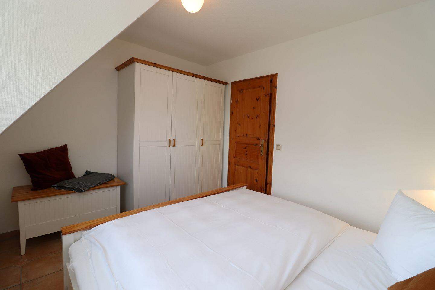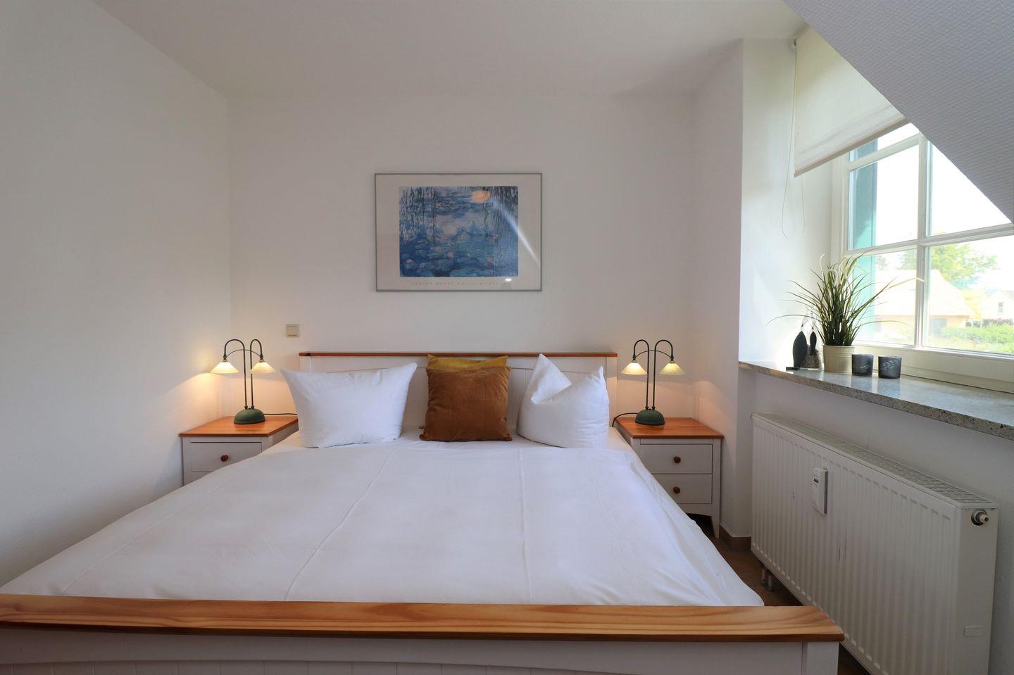 Der Balkon mit Süd-West-Ausrichtung ist ein weiteres Highlight. Hier können Sie den traumhaften Blick auf den Bodden genießen – sei es im Strandkorb oder auf der einladenden Sitzgruppe. Im Schlafzimmer sorgt ein komfortables Doppelbett für erholsamen Schlaf. Zusätzlich steht ein Zustellbett für eine dritte Person zur Verfügung, sodass auch Familien oder kleine Gruppen bequem Platz finden. Das Bad ist mit einer modernen Dusche und einem WC ausgestattet. Eine Waschmaschine steht Ihnen ebenfalls zur Verfügung, um Ihre Wäsche bequem zu waschen. Haustiere sind in diesem Appartement herzlich willkommen, sodass auch Ihr vierbeiniger Begleiter den Urlaub genießen kann. Das Rauchen ist jedoch im gesamten Appartement nicht gestattet. Leider steht in diesem Appartement kein W-LAN zur Verfügung. Ein Pkw-Stellplatz (Nr. 11) befindet sich direkt auf dem Grundstück der Ferienanlage.