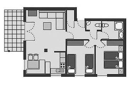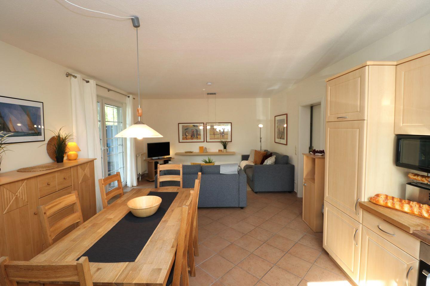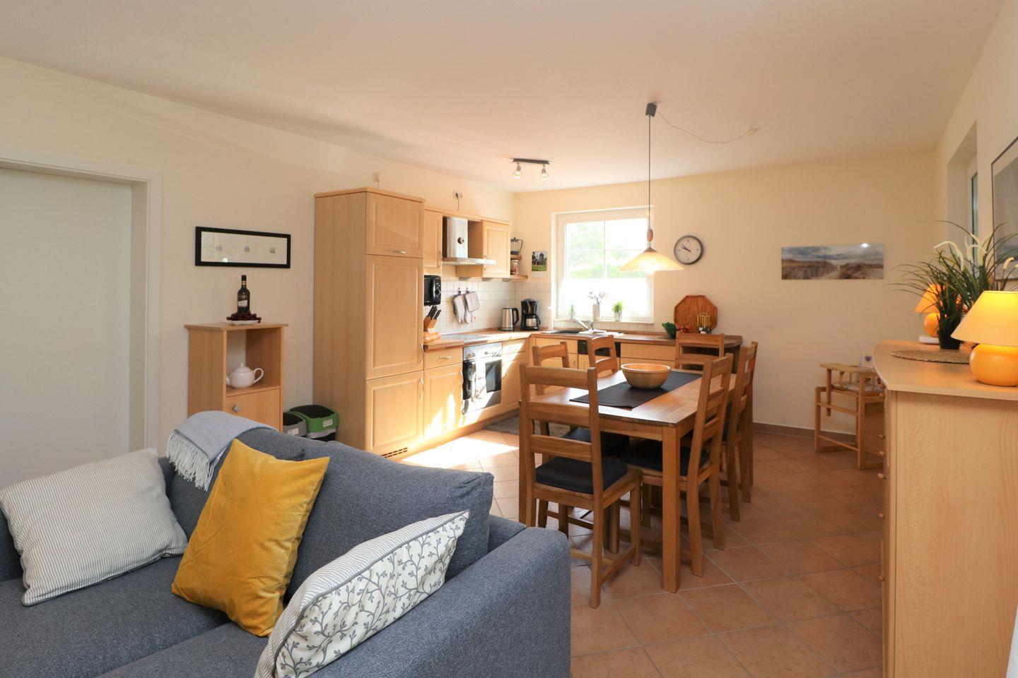 Mit einer Größe von 66 m² bietet die Wohnung Platz für bis zu vier Personen und ist ideal für Familien oder Paare, die sich nach Ruhe und Erholung sehnen. Der offene Wohnbereich umfasst eine gemütliche Sofaecke, einen Esstisch und eine moderne Küchenzeile, die mit allem ausgestattet ist, was Sie brauchen: Ein Herd mit 4 Platten, ein Backofen, eine Mikrowelle, eine Spülmaschine sowie Kaffeemaschine, Toaster und Wasserkocher sorgen dafür, dass Sie sich wie zuhause fühlen.