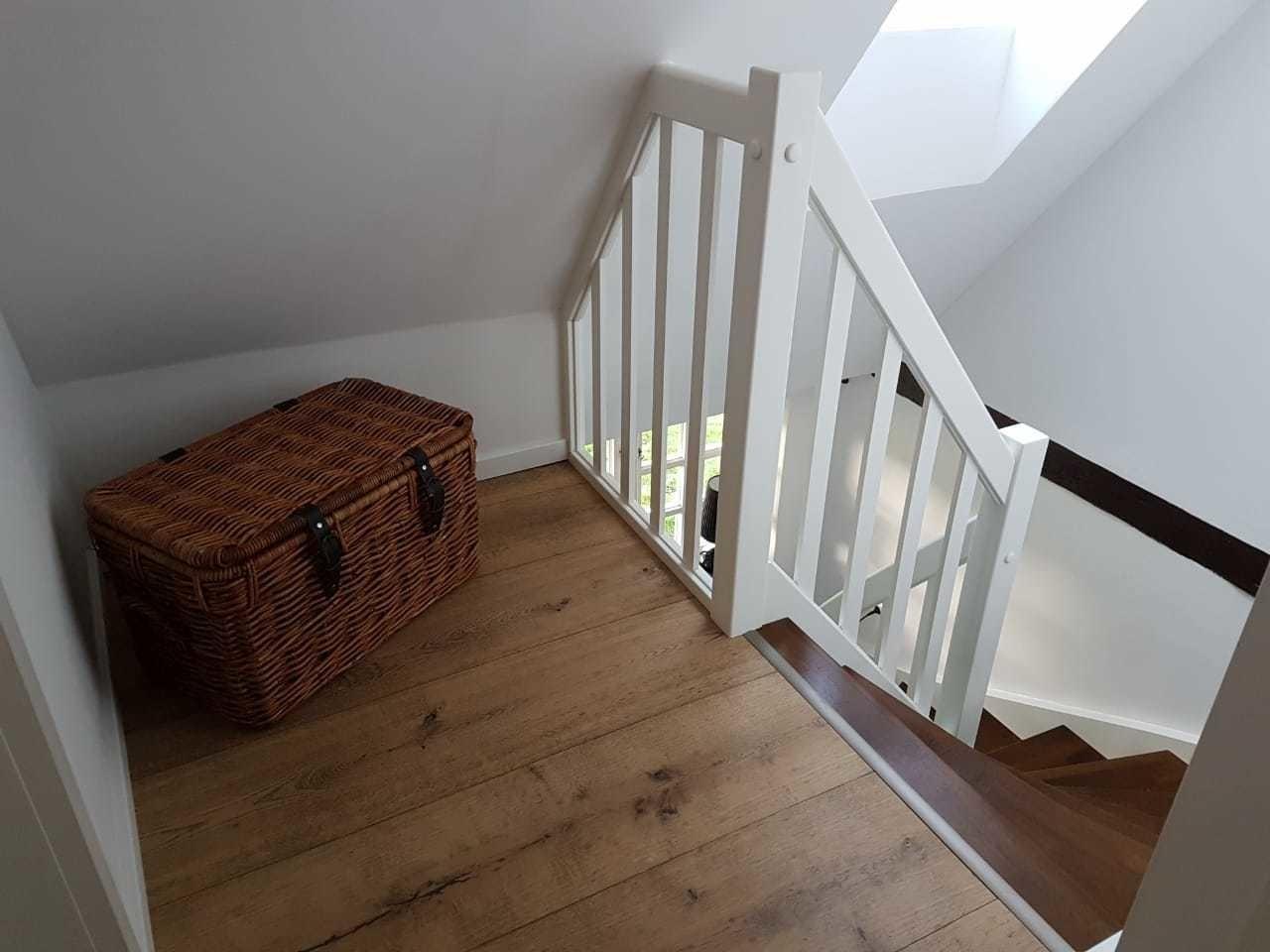 Während der Wintermonate 2017/2018 wurde das Dach ausgebaut, die beiden Schlafzimmer befinden sich getrennt voneinander unter dem Dach. Der Grundriss wird im Erdgeschoss so gestaltet, dass ein großer Wohnbereich mit Kamin entsteht. Das alte kleine Wohnzimmer unten wird dann ein zusätzliches Gästezimmer mit Leseecke.