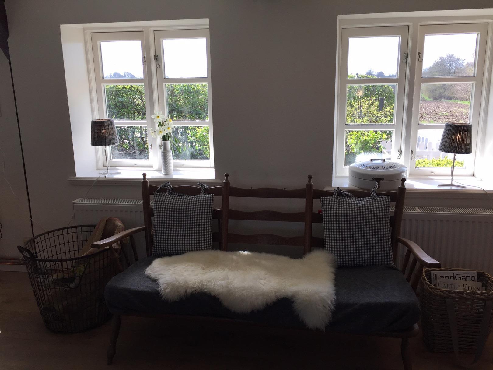 Urlaub unter Reet in einem typischen Angeliter Bauernhaus mit einer großzügiger Wohnküche und Kamin.