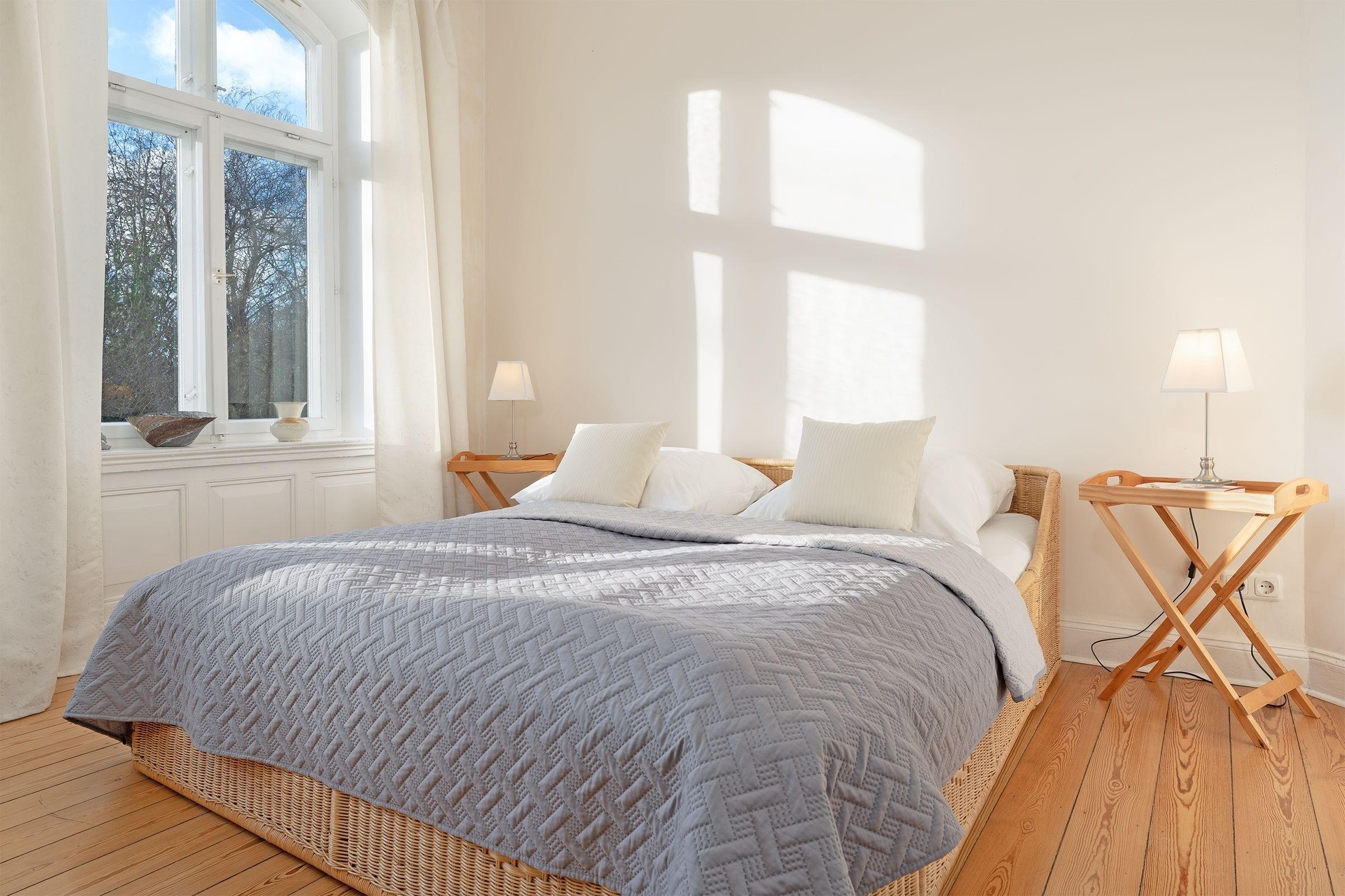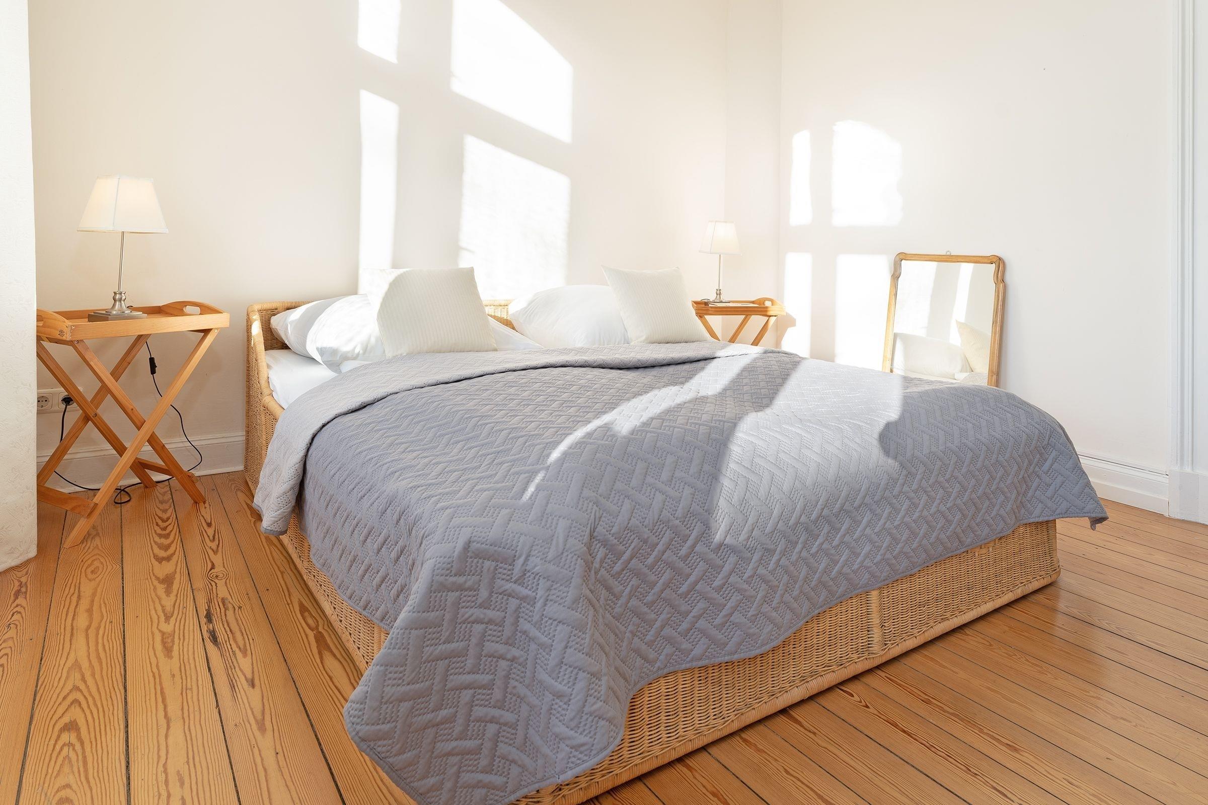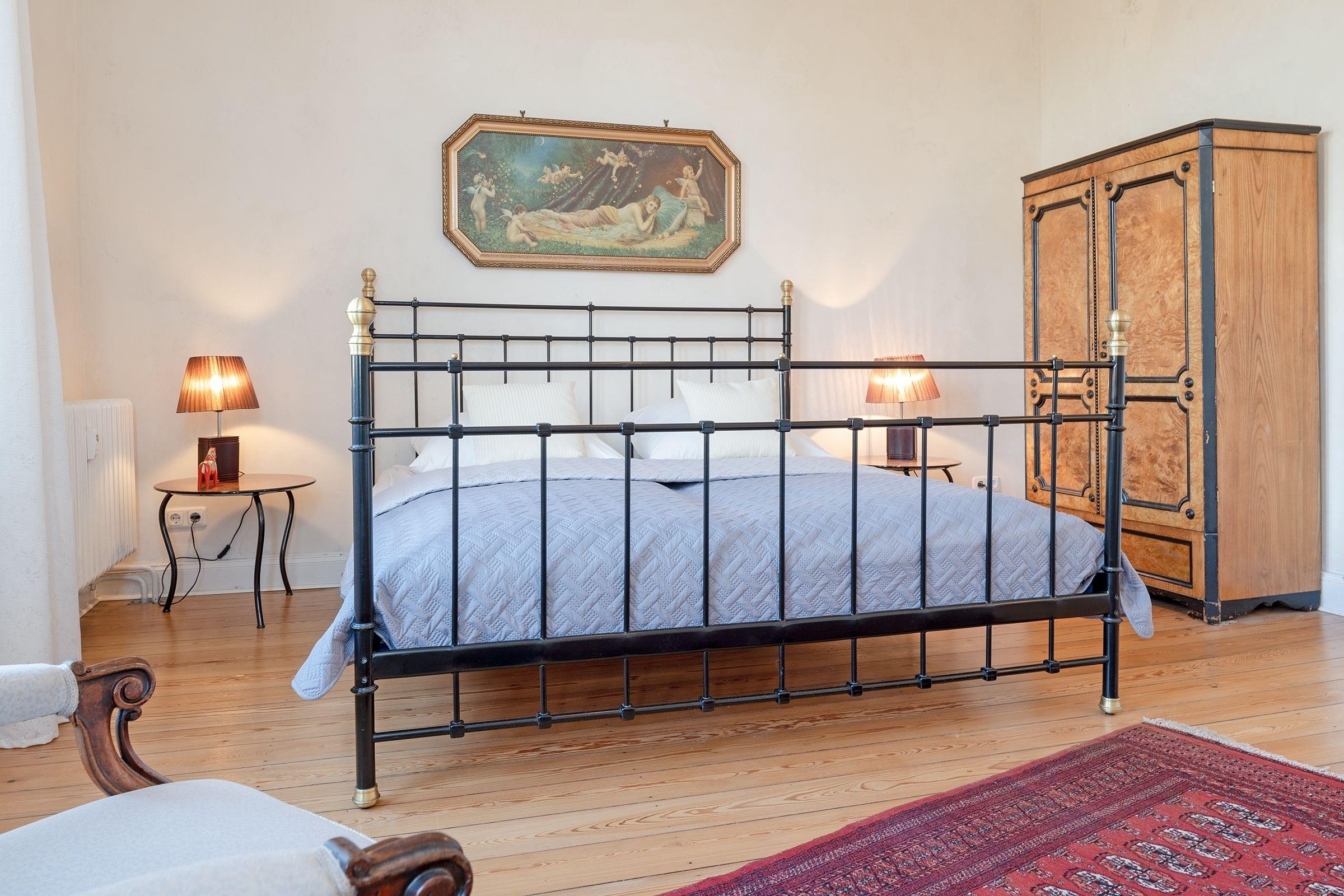 Schlafzimmer 2: Doppelbett (180x200 cm), Kleiderschrank, Badewanne im Zimmer, Verdunkelung: Vorhänge, Platz für Babybett vorhanden