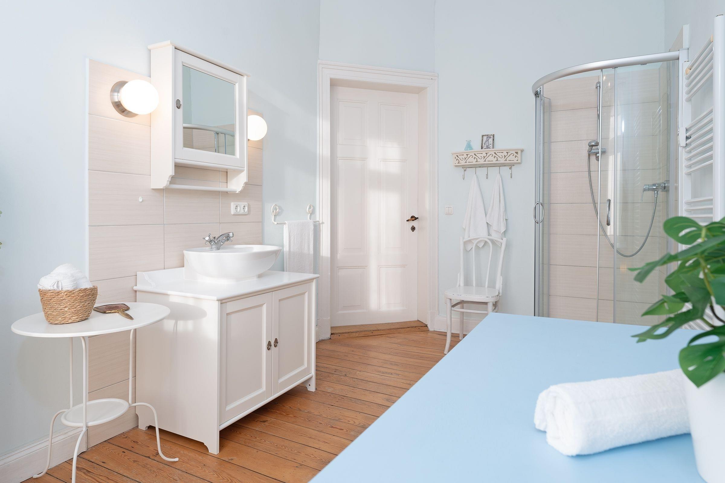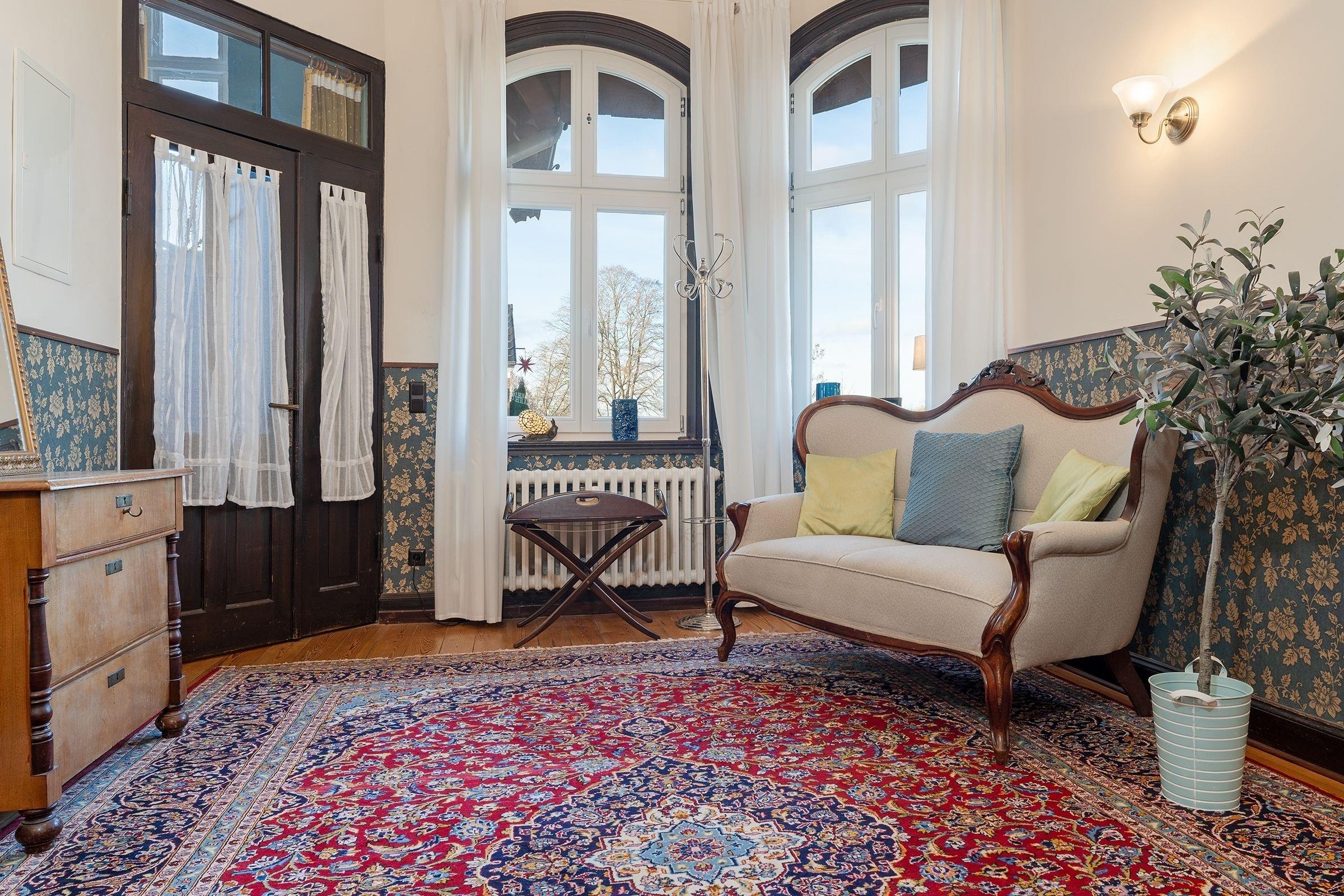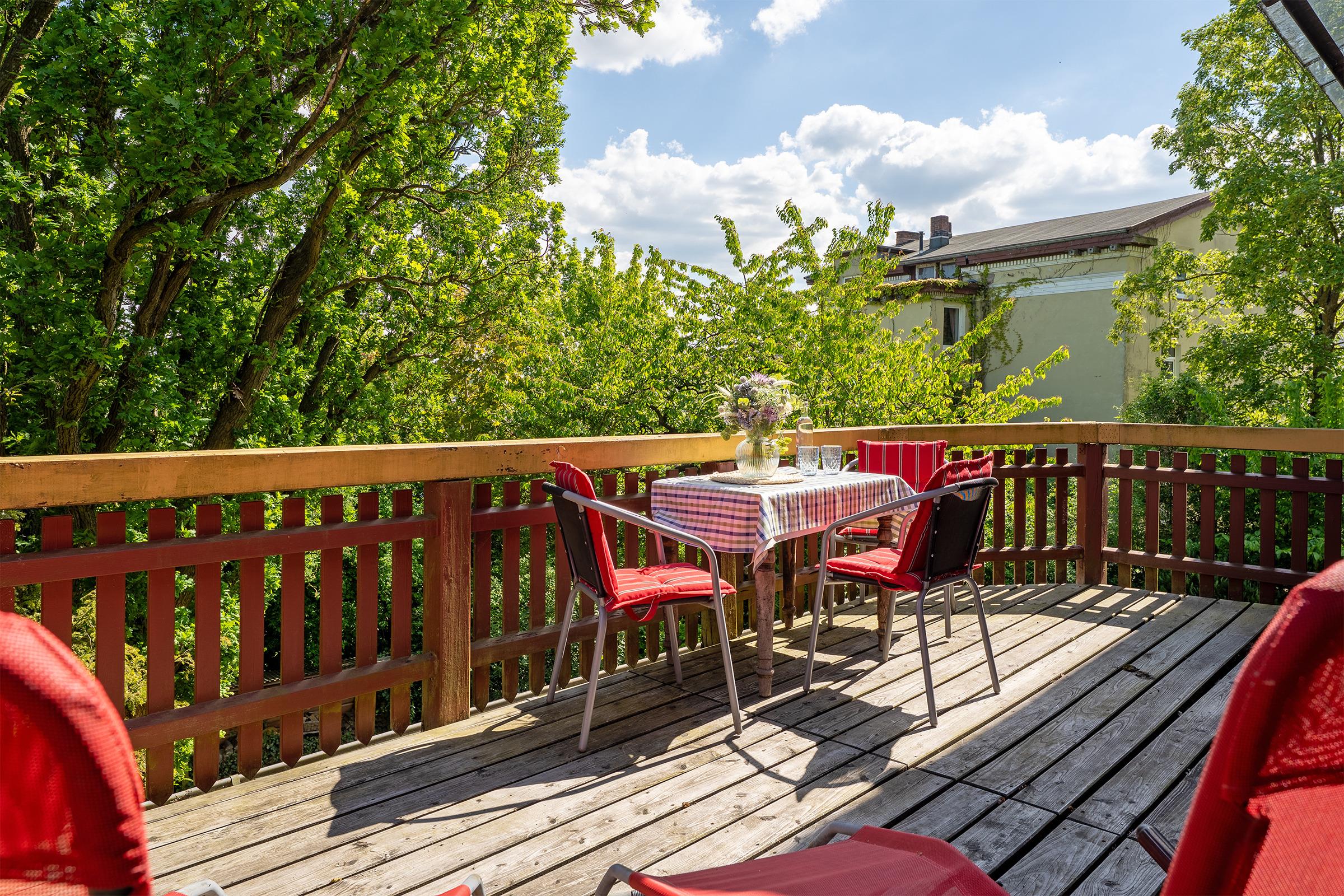 Seenahe 4-Zimmer-Ferienwohnung im 1. Stock mit Balkon in Eutin in der Holsteinischen Schweiz mit 110 m² Wohnfläche und Gemeinschaftsgarten für bis zu 4 Personen.