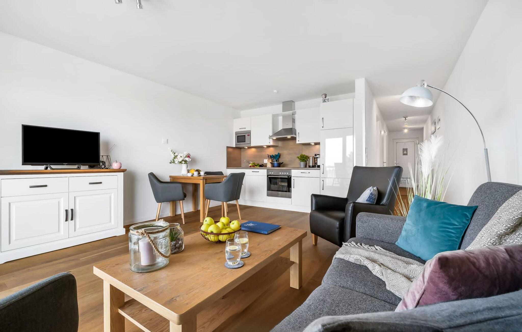 Moderne Ferienwohnung mit Hafenblick direkt an der Ostsee in Olpenitz, ideal für entspannte Urlaubsmomente am Wasser.