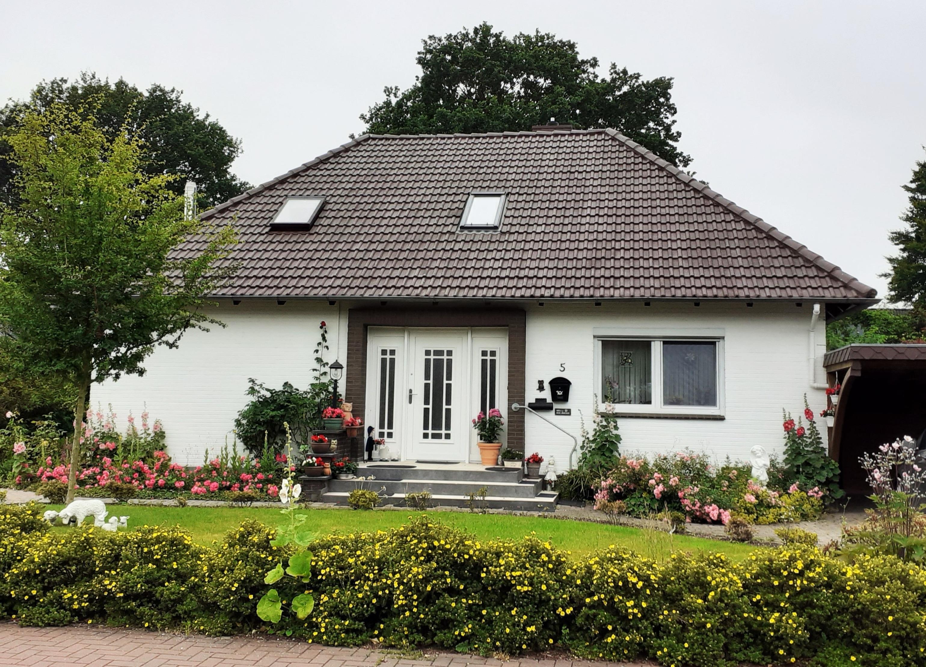 Ruhiges Einfamilienhaus in Fahrdorf mit Garten, Teich und Blockhütte. Die Ferienwohnung liegt im Obergeschoss. Einen Autoabstellplatz bietet der hauseigene Parkplatz. Unterstellplatz für mitgebrachte Fahrräder ist ebenfalls vorhanden. Hauseigene Fahrräder stehen kostenlos zur Verfügung.