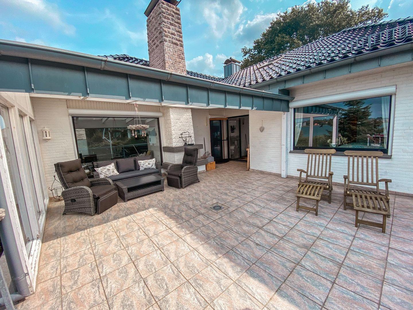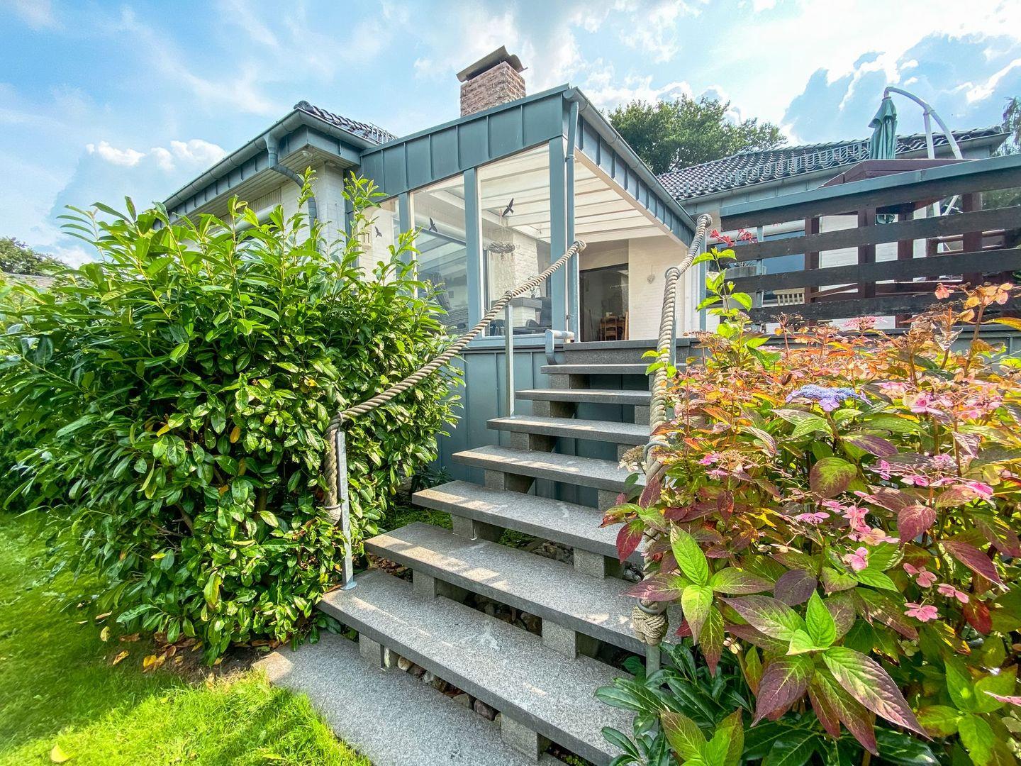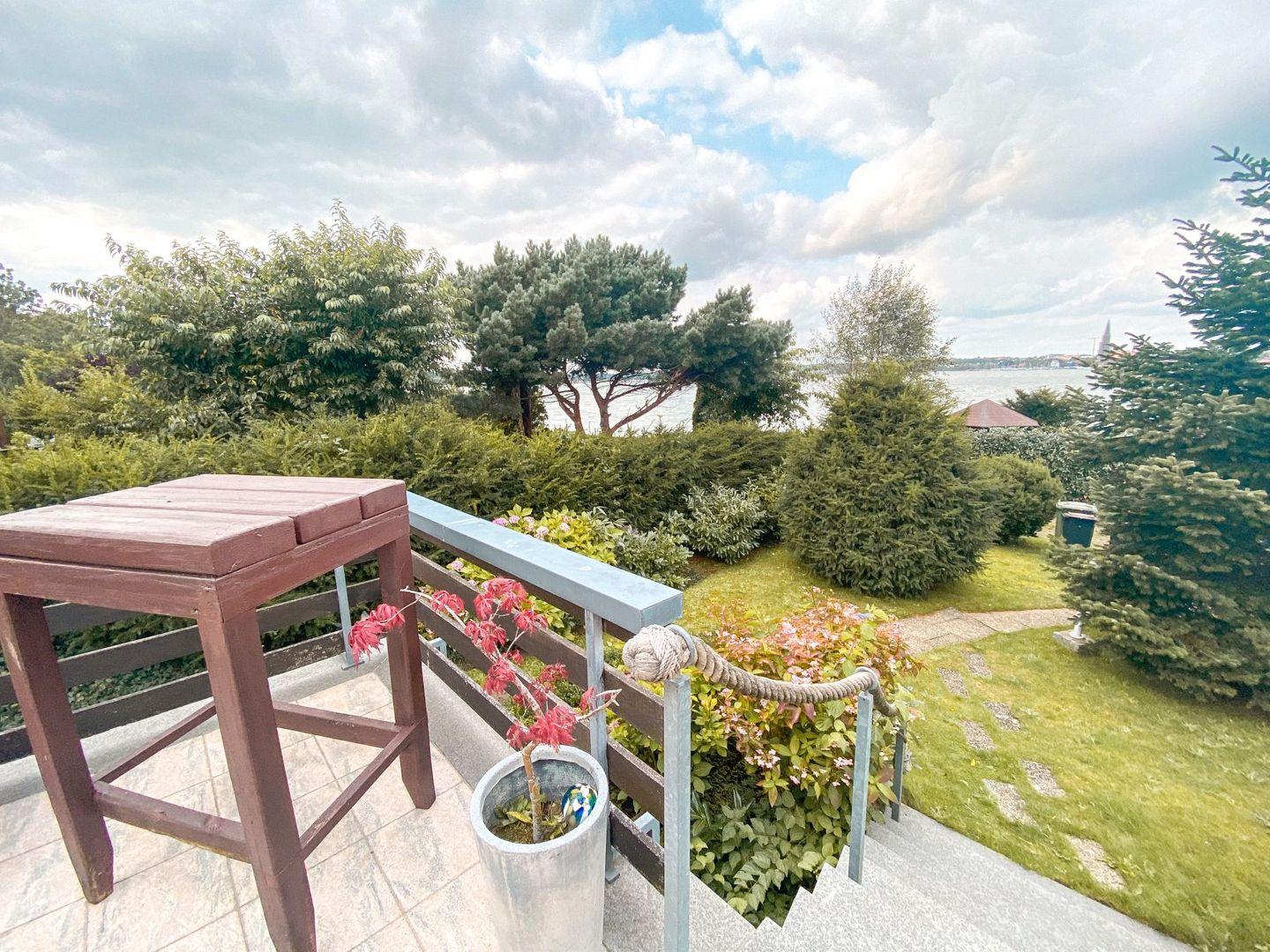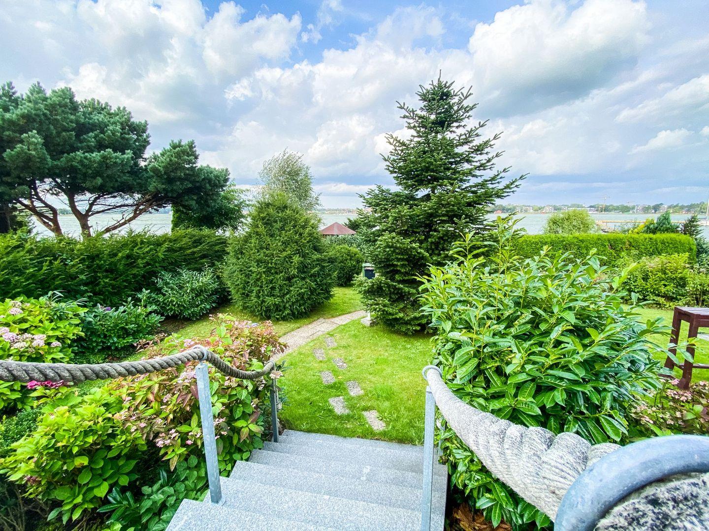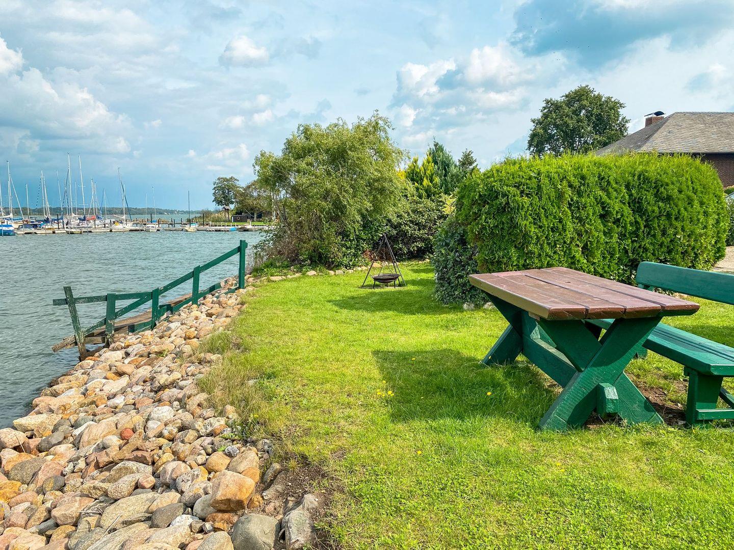 Das Grundstück ist großzügig geschnitten. Von der halb-überdachten großen Terrasse können Sie über eine Treppe direkt zum Wasser gehen. Dort stehen ausreichend Sitzmöglichkeiten und eine Feuerschale für Sie bereit.