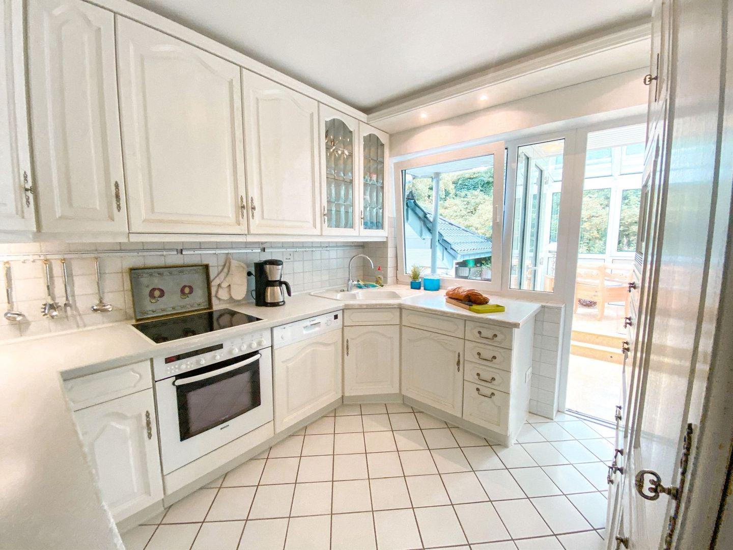 Von der Küche aus geht es direkt in den Wintergarten. Alle Räume befinden sich im EG. Lediglich der Hauswirtschaftsraum ist im Keller gelegen. (Spiegeltür)