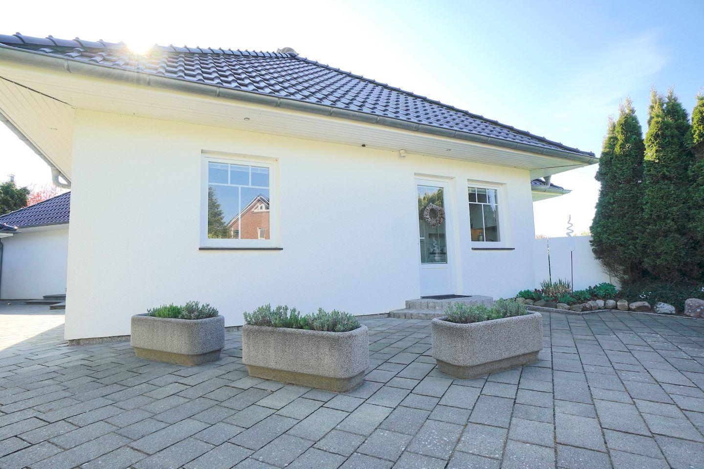 In mitten der ruhigen Nachbarschaft befindet sich die Einliegerwohnung angeschlossen an das Einfamilienhaus der Eigentümer mit separatem Eingang und Parkplatz direkt vor der Tür.