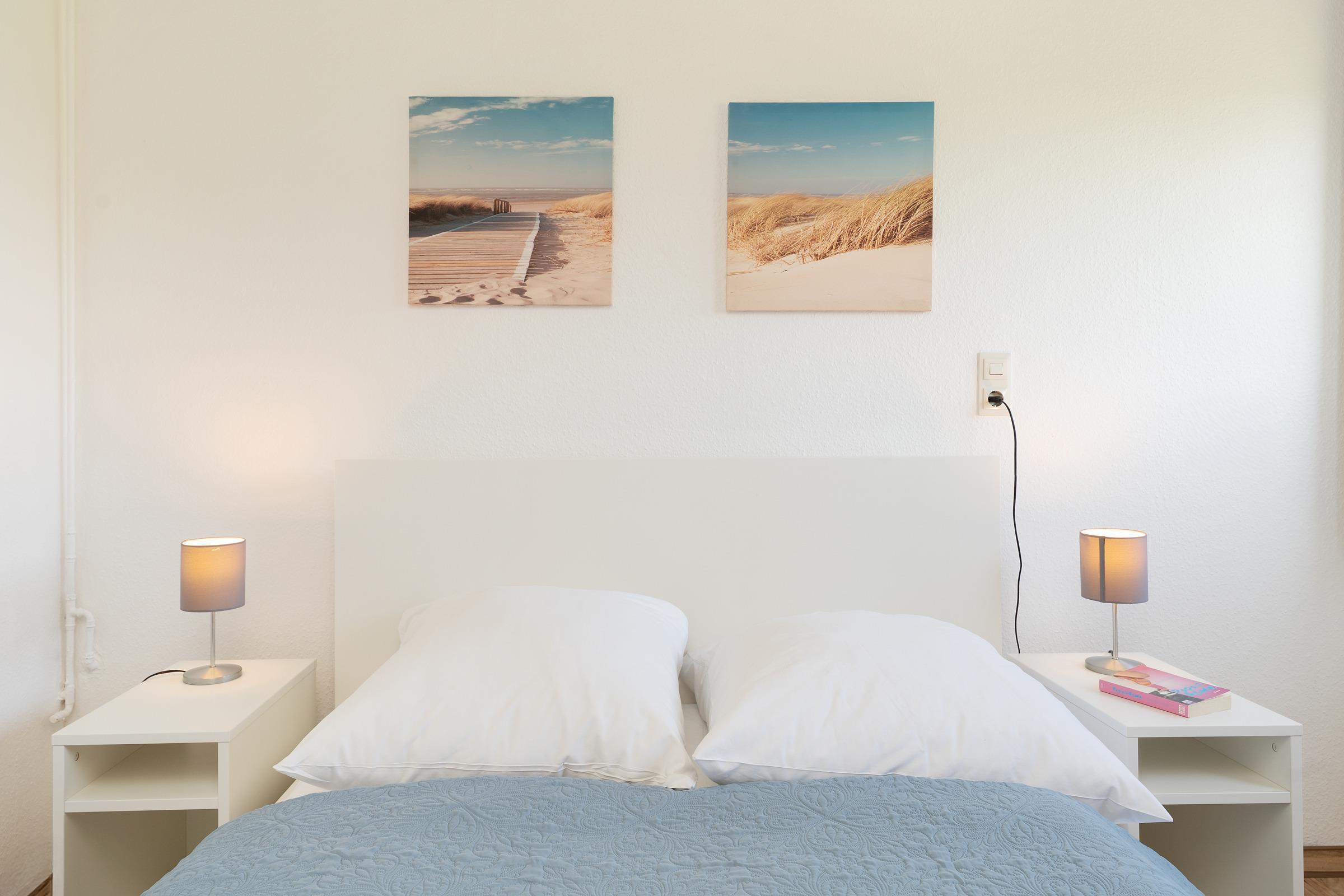 Schlafzimmer (1. OG): 1 Doppelbett (2x 90x200 cm), Kleiderschrank, Verdunkelung: Plissees und Vorhänge, Platz für ein Babybett