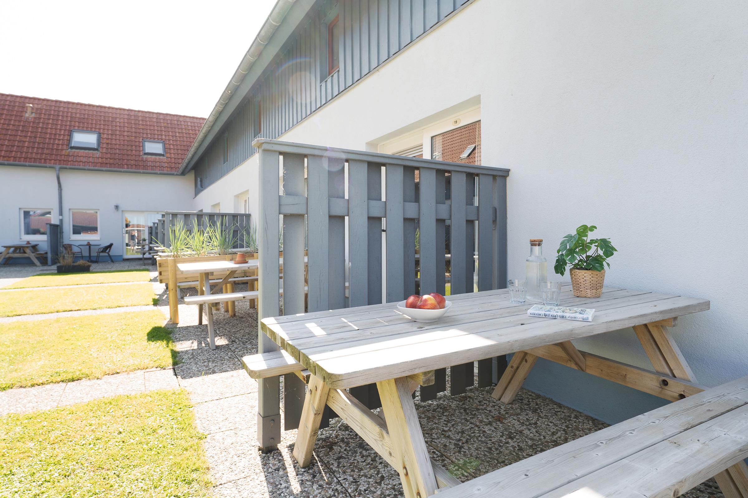 Gemütliche Ferienwohnung in Fehmarn-Sulsdorf mit Gemeinschaftsgarten und moderner Ausstattung für erholsame Urlaubstage.