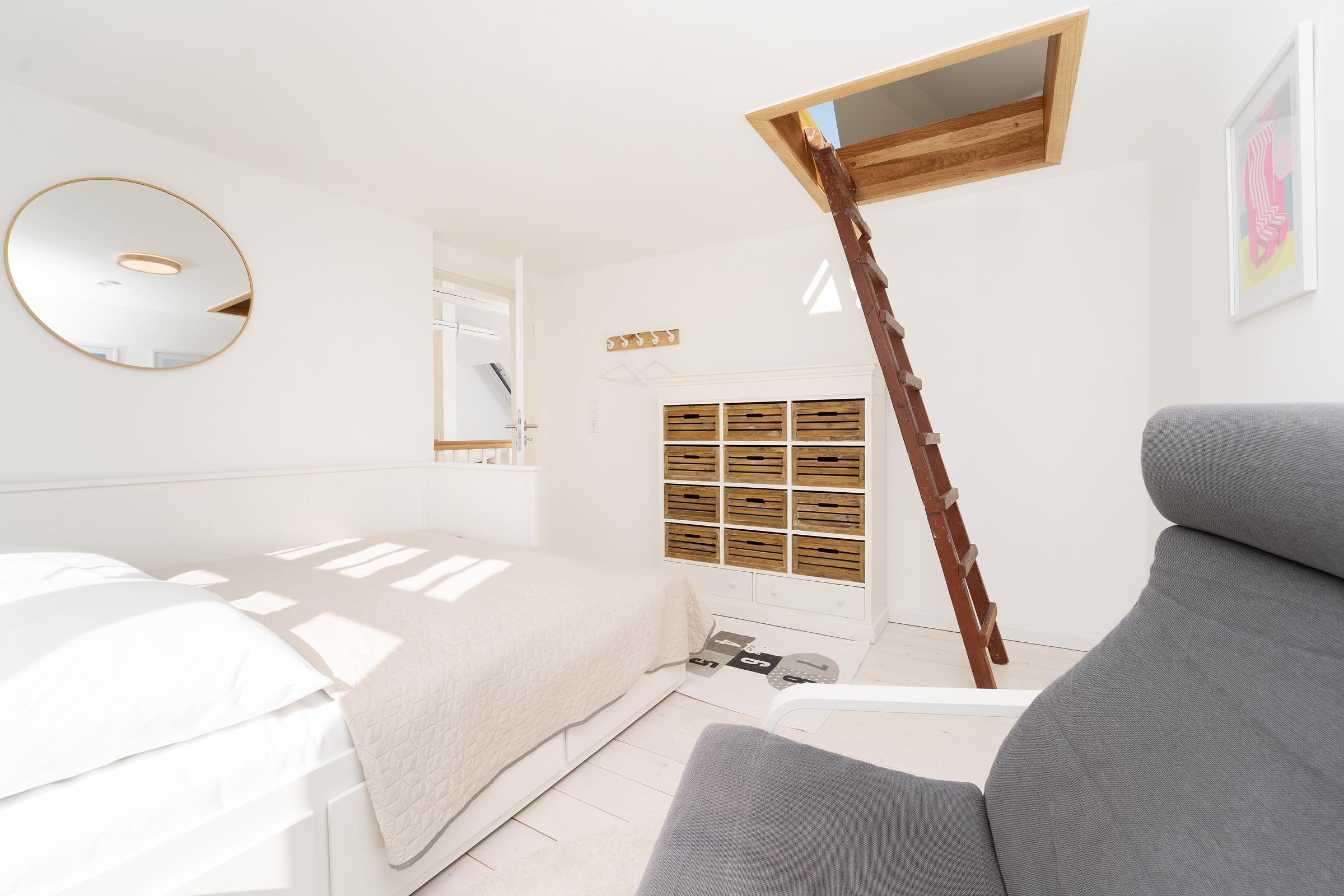 Schlafzimmer 3 (OG): 1 Kojenbett (90 x 200 cm), Verdunkelung: Velux Rolladen/ Schiebetür