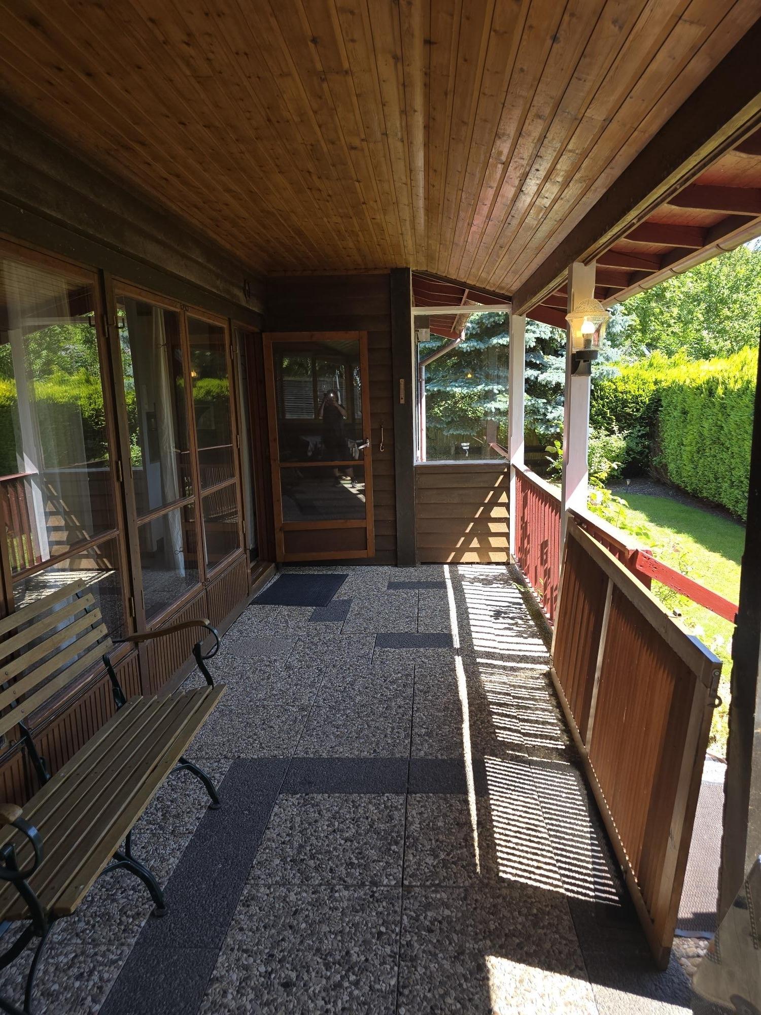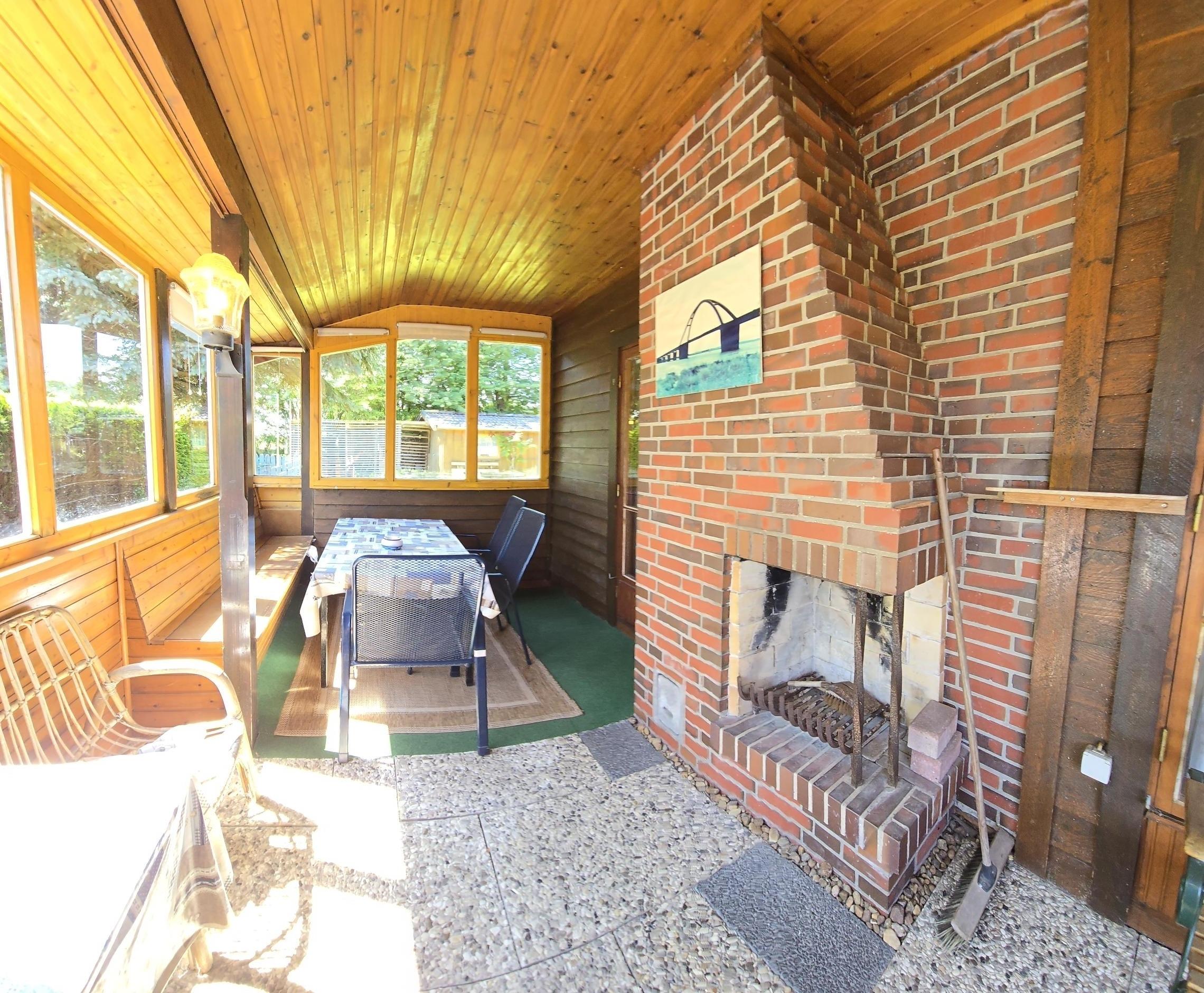 Überdachte Terrasse mit Außenkamin und Sitzbereich – ideal bei jedem Wetter