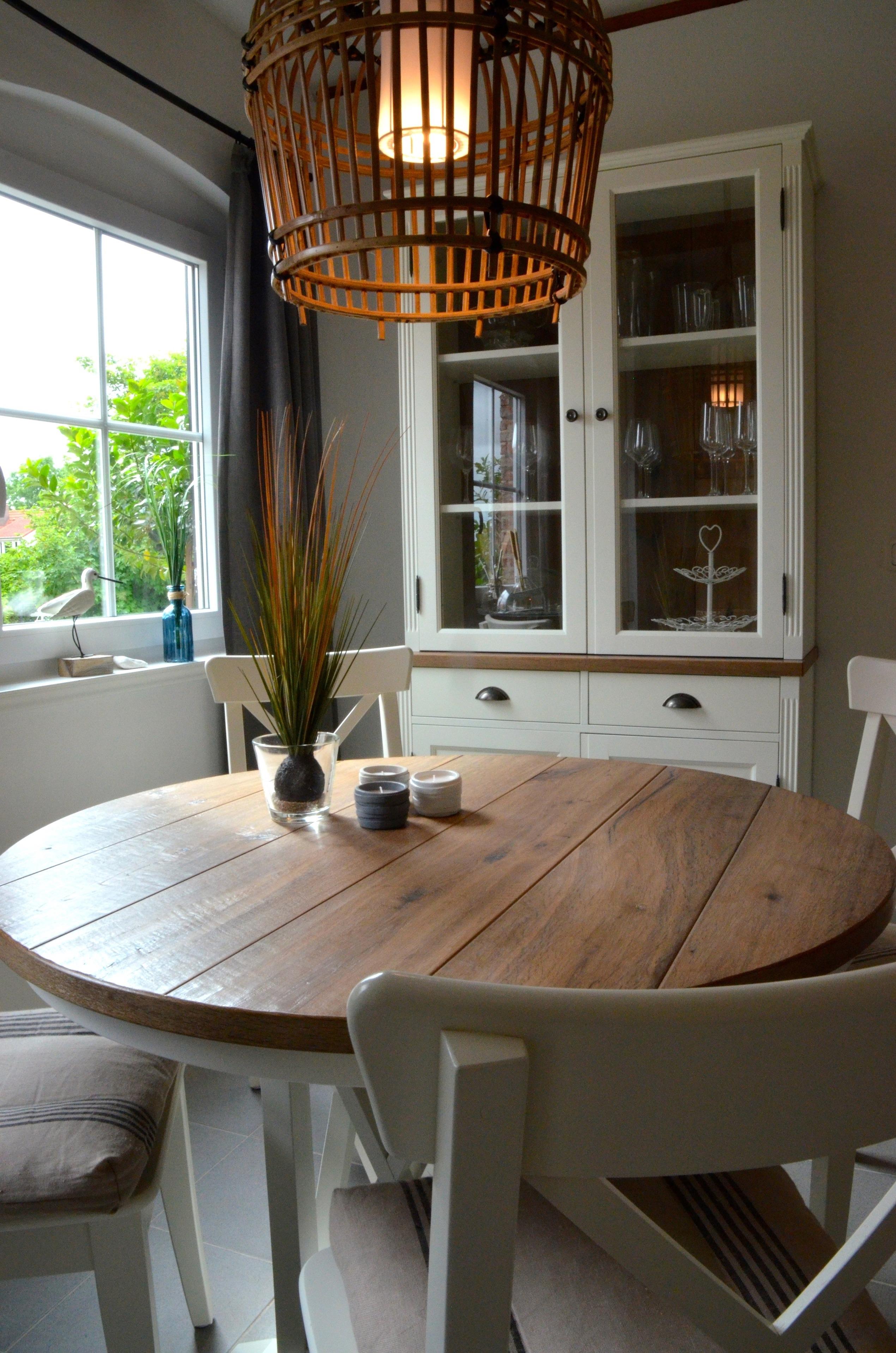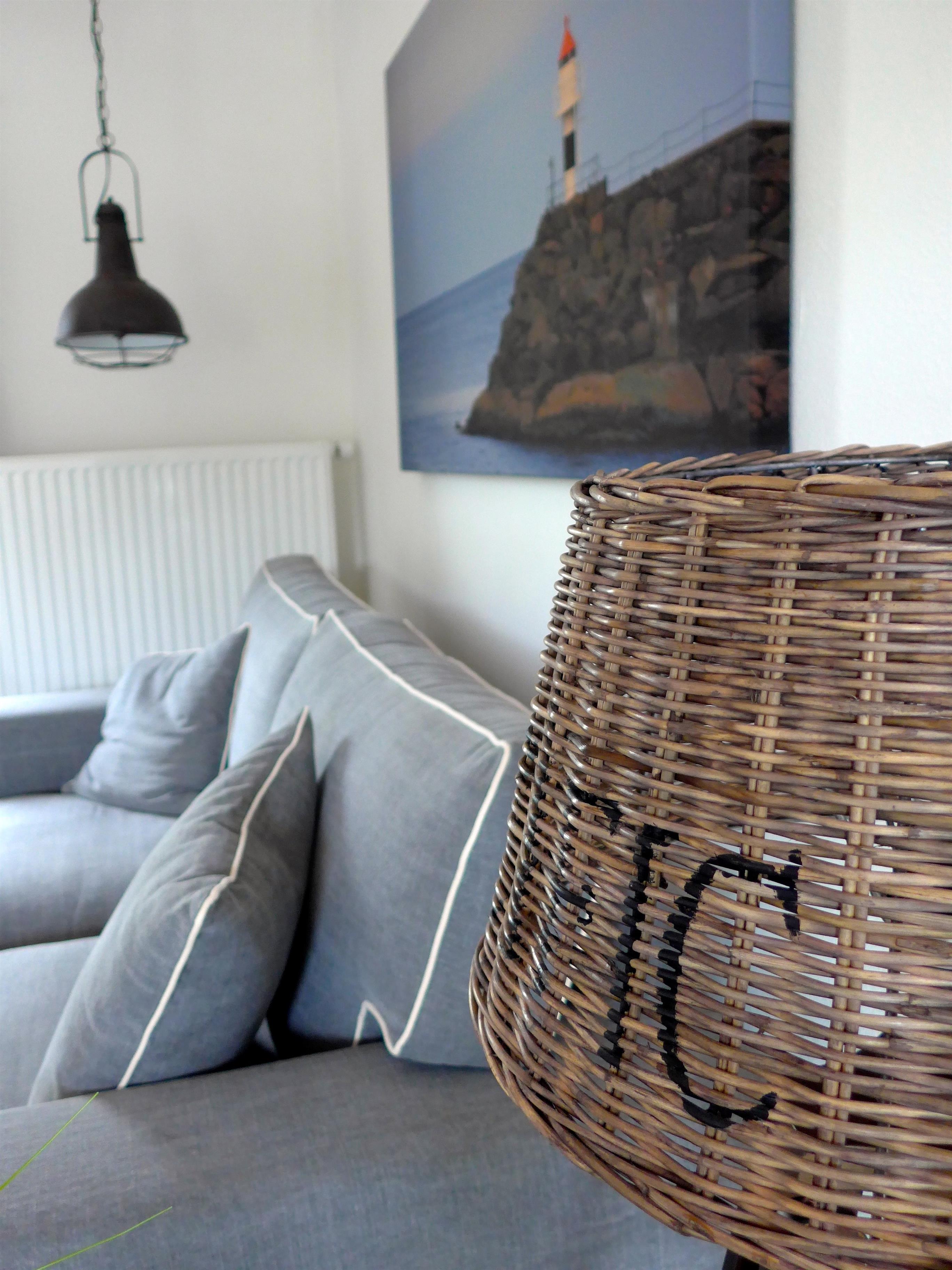 Das Wohn- und Esszimmer ist im nordisch-maritimem Flair eingerichtet.