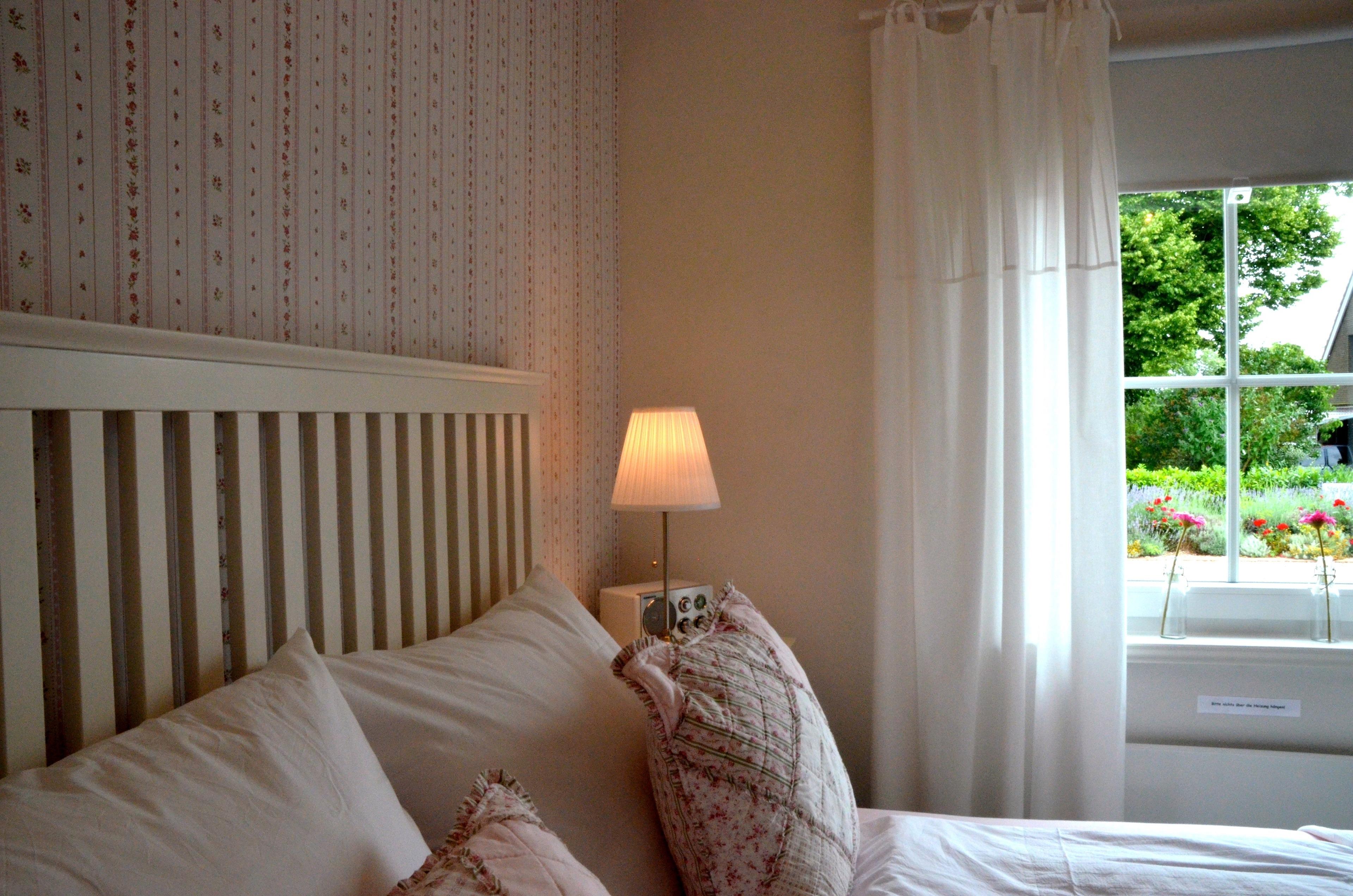 Sie schlafen in einem romantischen Schlafzimmer mit einem Boden aus geräucherten Eichendielen, einem Kronleuchter an der Decke und vielen liebevollen Details, das Bett hat eine Größe von 160 x 200 cm.