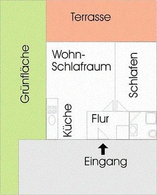Die Wohnung ist zwar ebenerdig hat aber eine Stufe zum Eingang und zur Terrasse.