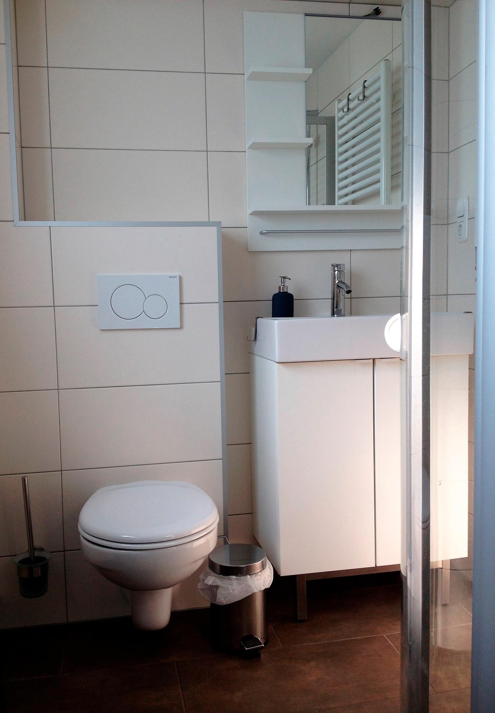 Sie ist 50 qm groß und besteht aus einem Wohnraum mit einer Essecke, einer separaten voll ausgestatteten Küche, einem Schlafraum und einem Badezimmer mit Dusche und WC. Draußen befindet sich eine überdachte Sitzecke, die einen eigenen Zugang hat. Ein eigener Parkplatz ist vorhanden.