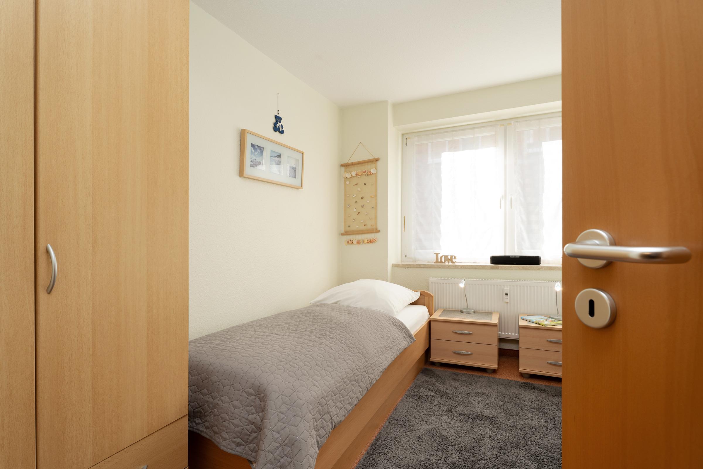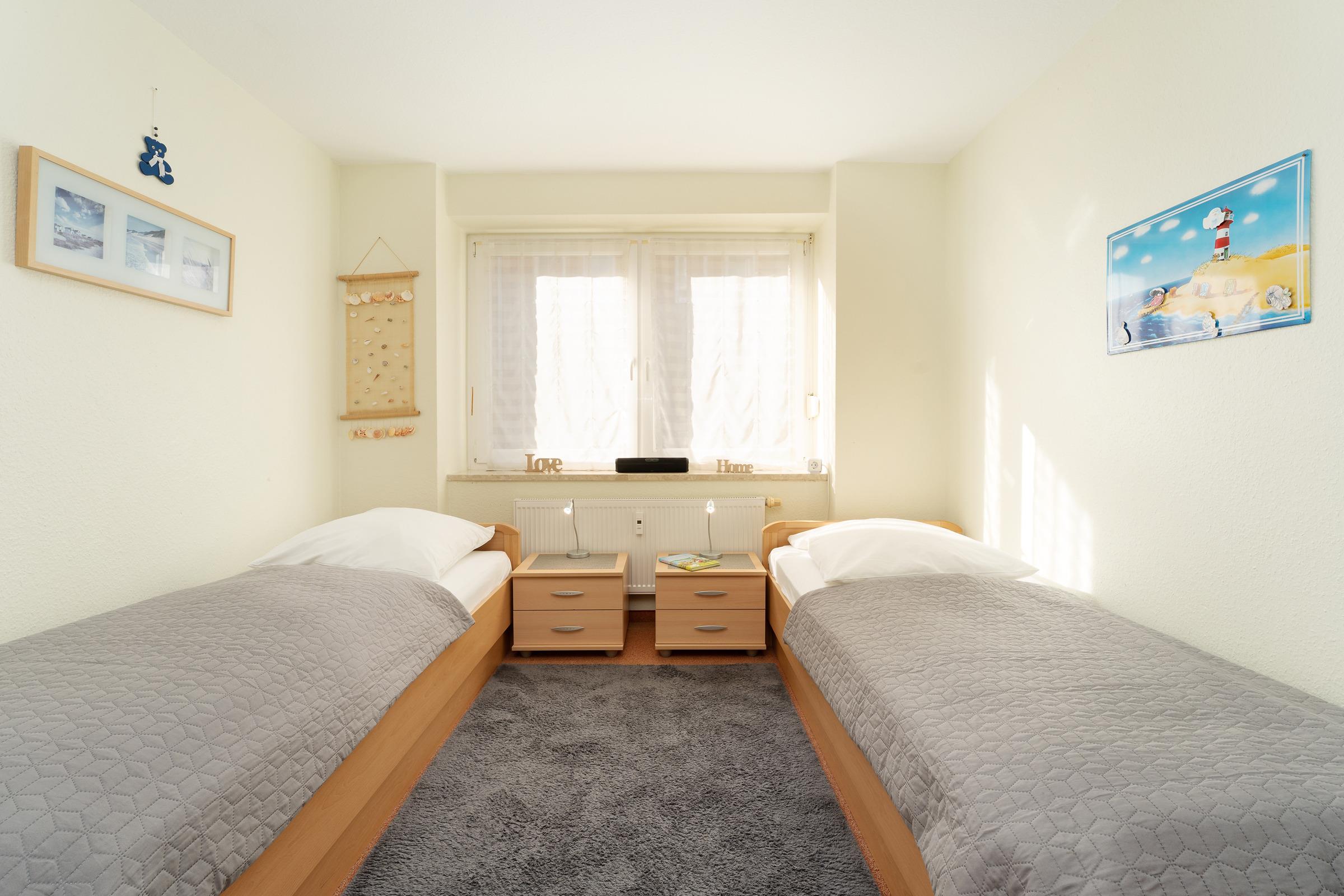 Schlafzimmer 2: 2 Einzelbetten, Kleiderschrank, Verdunkelung (Außenjalousien)
