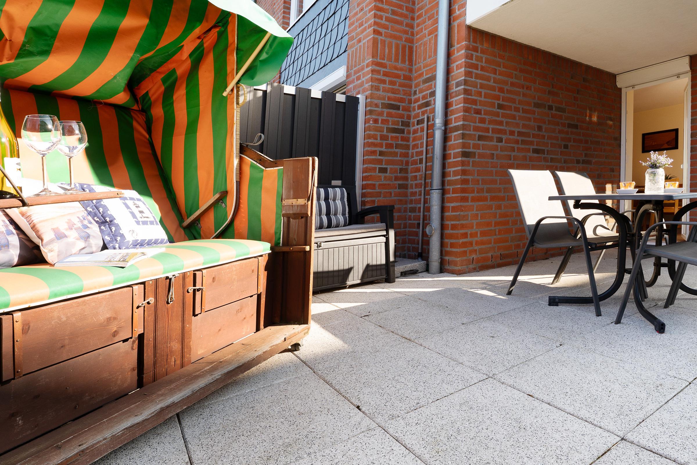 Herzlich willkommen - Ihr Feriendomizil ist liebevoll und komfortabel eingerichtet und bietet beste Erholung und Entspannung. Machen sie es sich im großzügigen Wohn- und Essbereich vor dem TV gemütlich - oder genießen Sie Ihre Lieblingsspeisen, die Sie zuvor in der separaten Küche zubereitet haben. Die gute Ausstattung mit Geschirrspüler wird Sie begeistern. Genießen Sie Ihre Auszeit auf der möblierten Terrasse mit eigenem Strandkorb. Für eine geruhsame Nacht stehen Ihnen ein Schlafzimmer mit einem Doppelbett sowie ein Schlafzimmer mit zwei Einzelbetten zur Verfügung. Das tageslichthelle Duschbad ist hell gefliest und verspricht einen guten Start in den Tag. Zum historischen Stadtkern sind es übrigens nur rund 10 Gehminuten.