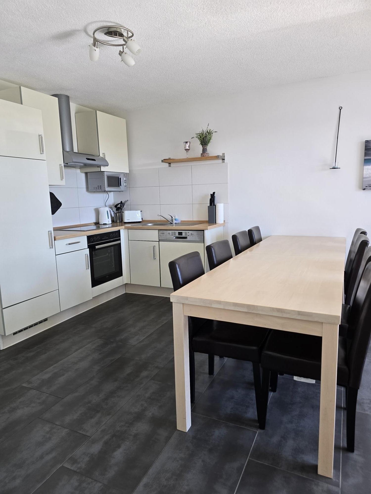 Beide Küchen sind mit Geschirrspüler, Kochfeld, Mikrowelle und Backofen top ausgestattet.