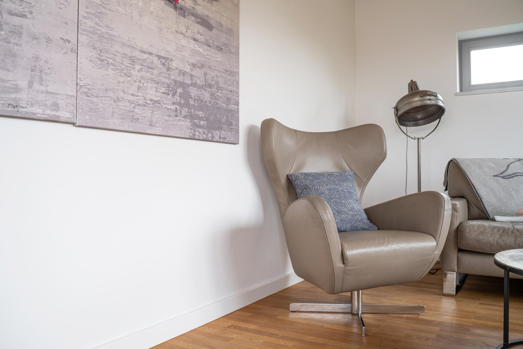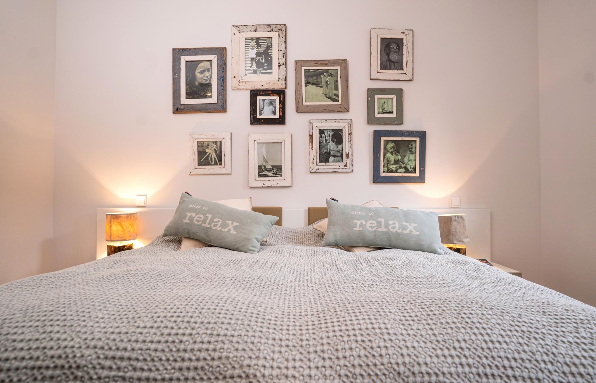 Das Schlafzimmer (Hülsta) ist mit einem Doppelbett B180cm x L 200cm mit Einzelmatratzen ausgestattet. Jede Menge Schrankplatz ist vorhanden, um den einen oder anderen Pullover mehr, oder ein schickes Abendoutfit mit zu bringen. Übrigens: Wäschespinne, Bügeleisen u.-brett befinden sich in der Wohnung.