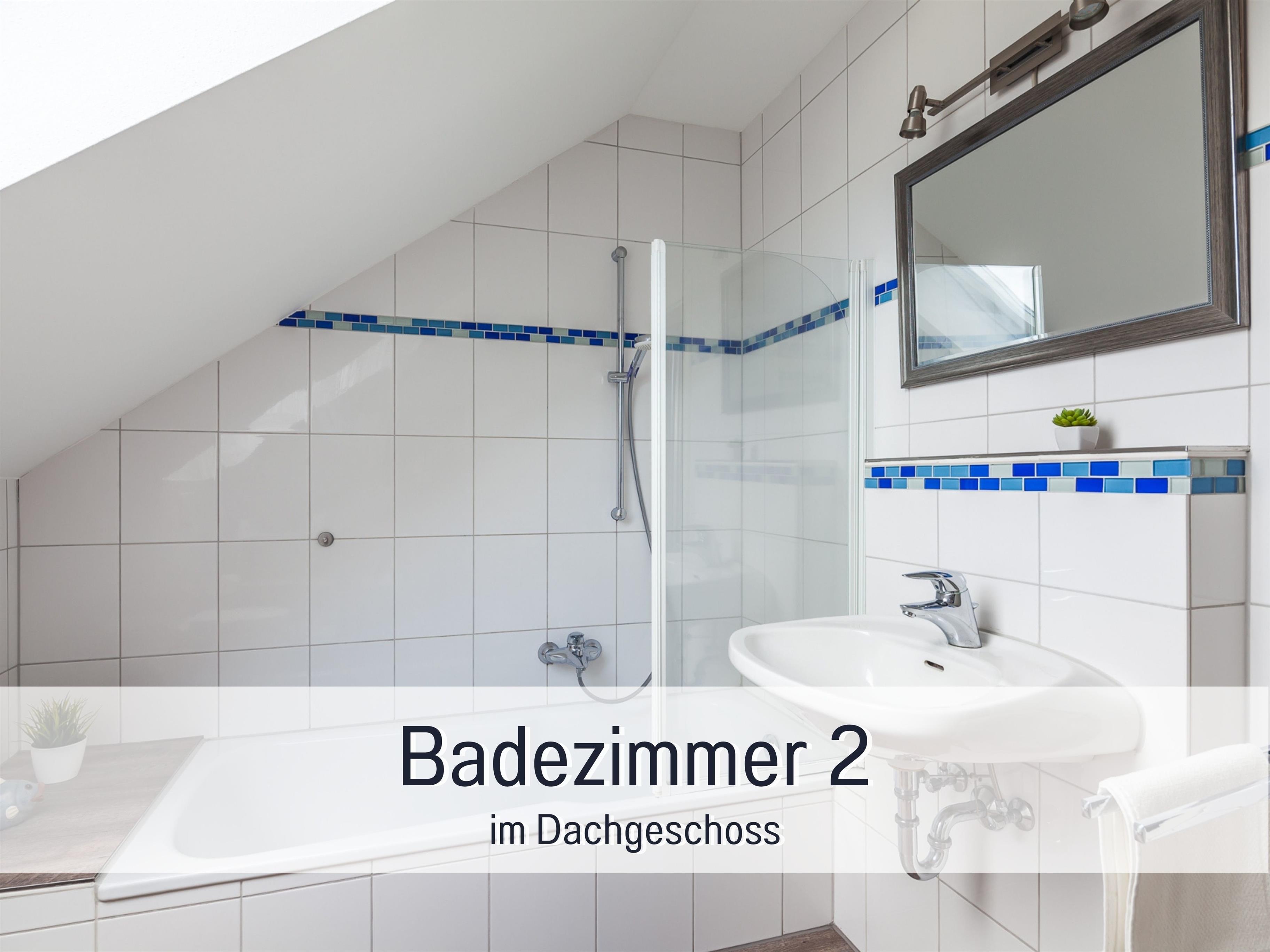 - Bad im Obergeschoss mit Duschwanne und Wickeltisch