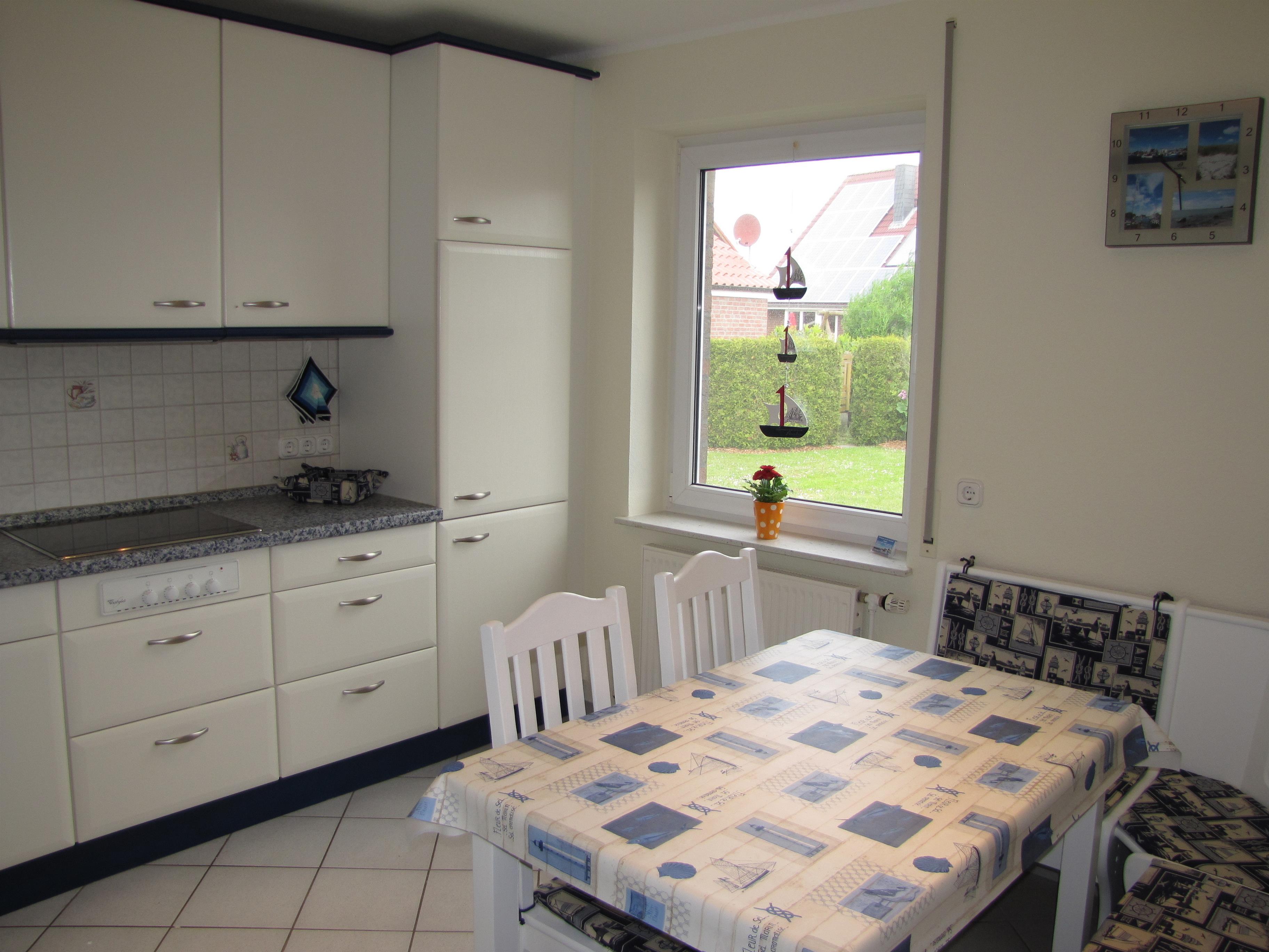 Die Küche ist voll ausgestattet und bietet auf einer Eckbank zusätzliche Sitzmöglichkeiten für 5-6 Personen.