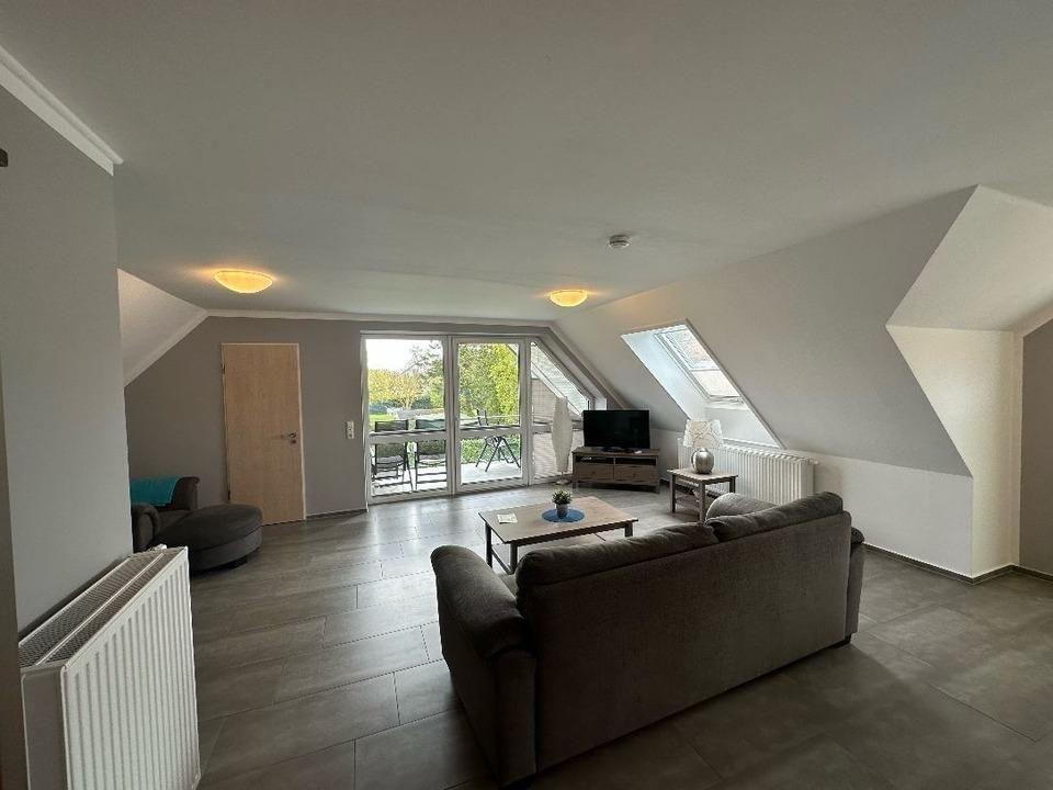 Diese 125 Quadratmeter große Ferienwohnung im oberen Teil des Ferienhauses versetzt Sie durch die großzügige Aufteilung und Einrichtung (incl. Waschmaschine und Trockner) gleich in Urlaubslaune. Vom Balkon aus können Sie entspannt in das Grün der Gärten sehen. Hier ist genau der richtige Ort, um abzuschalten und auf wundervolle Momente anzustoßen. Auch wenn dieses Haus Sie im Sturm erobert und zudem viel Platz und Luxus bietet - es lohnt sich rauszugehen. Durch die zentrale Lage in der Stadt Burg erreichen Sie schnell den Markt, Geschäfte sowie Essensmöglichkeiten oder Sie starten von hier Ihre Radtouren. In wenigen Minuten sind Sie mit dem PKW am schönsten Strand der Insel - dem Südstrand.