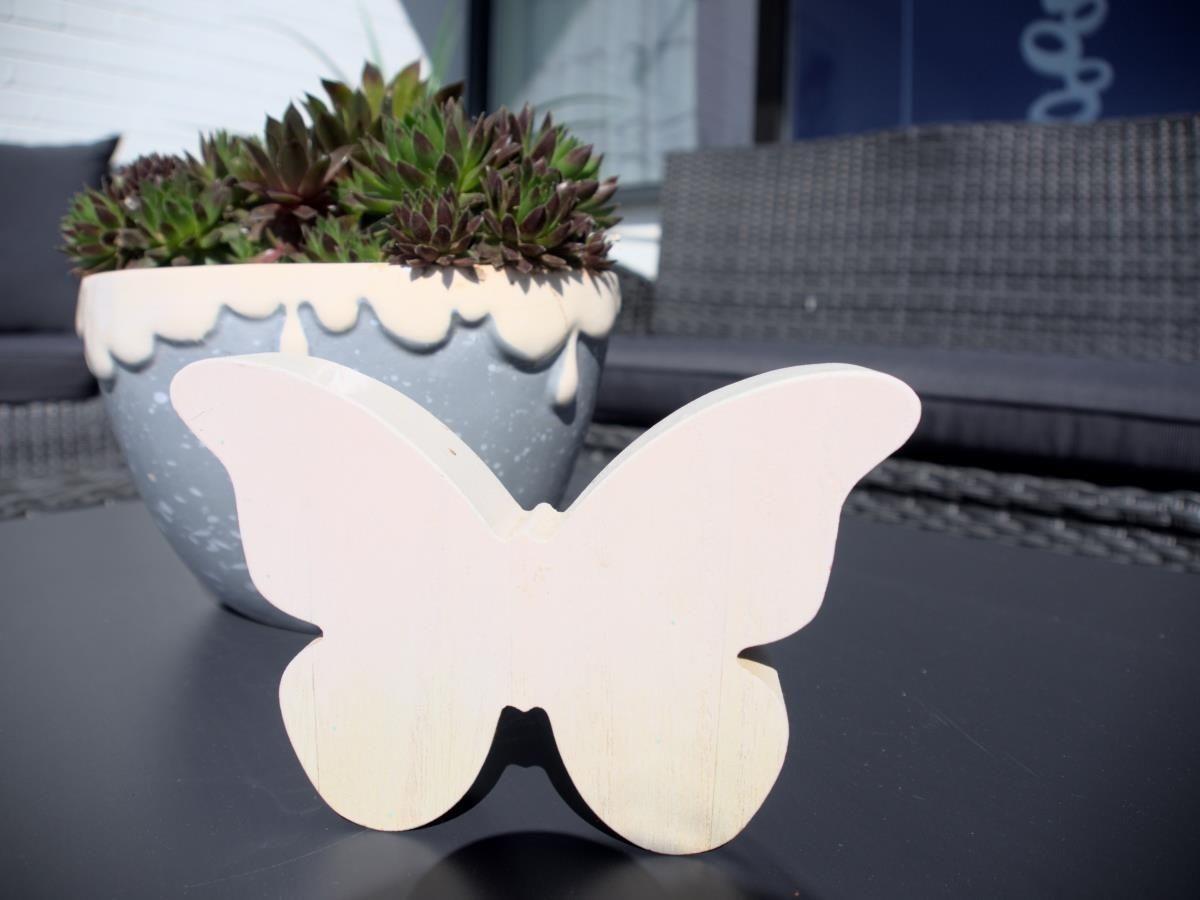 Auf der sonnigen Terrasse sind bequeme Gartenmöbel vorhanden und laden zum Beine hochlegen ein. Von der Terrasse gelangen Sie direkt in den kleinen Garten.