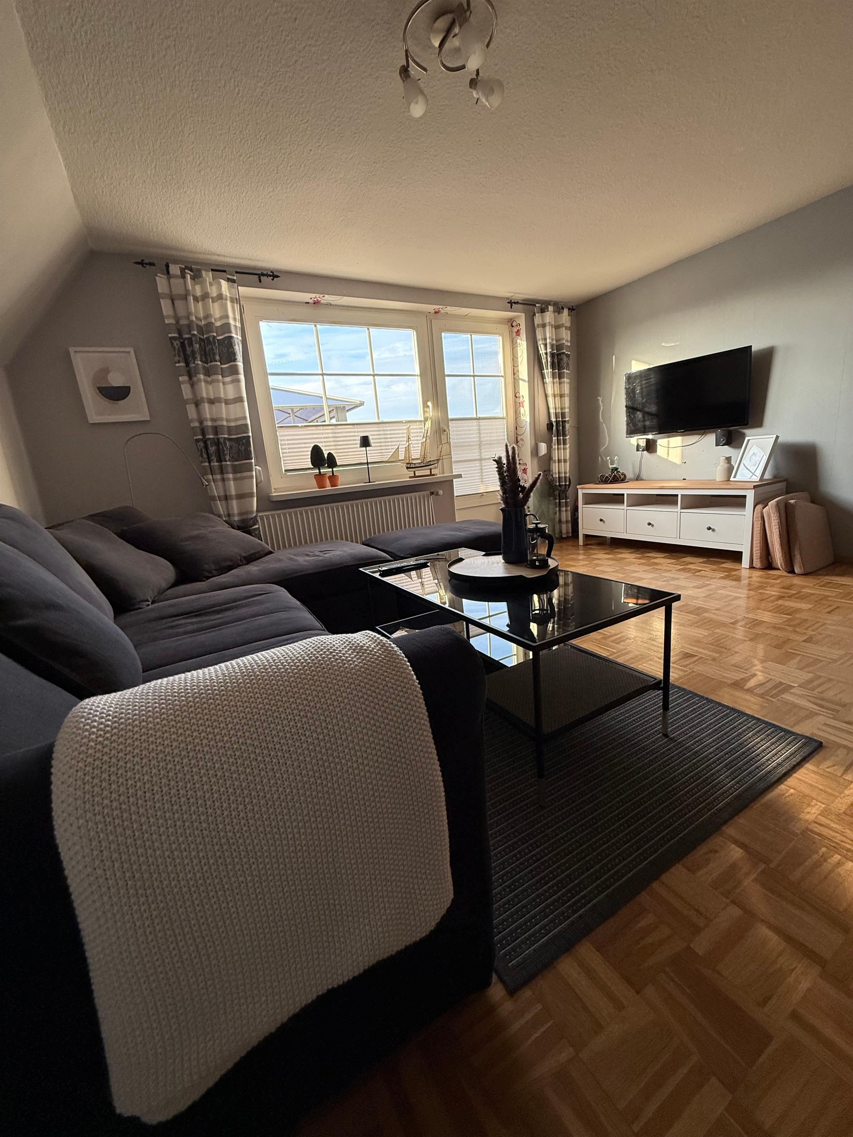 Eine Wohlfühl-Ferienwohnung für drei Personen in der 1. Etage erwartet Sie. Fühlen Sie sich in dieser freundlich und modern eingerichteten Wohnung wie Zuhause und genießen Sie Ihren Urlaub vom ersten Moment an. Die voll ausgestattete Ferienwohnung besticht mit viel Liebe zum Detail, da fällt das Entspannen nicht schwer. Die nach Westen ausgerichtete großzügige Dachterasse lädt ein, die Seele baumeln und den Blick in die Ferne schweifen zu lassen.