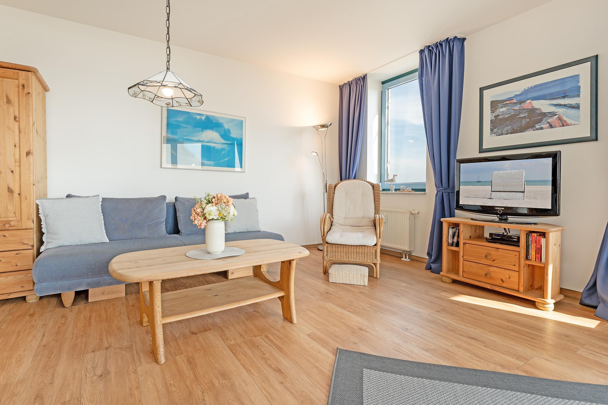 Strandnahe 2-Zimmer-Ferienwohnung in malerischer Lage am Südstrand in der Appartementanlage Strandburg auf Fehmarn für bis zu 2 Personen auf 62 m² Wohnfläche mit Balkon und Meerblick.