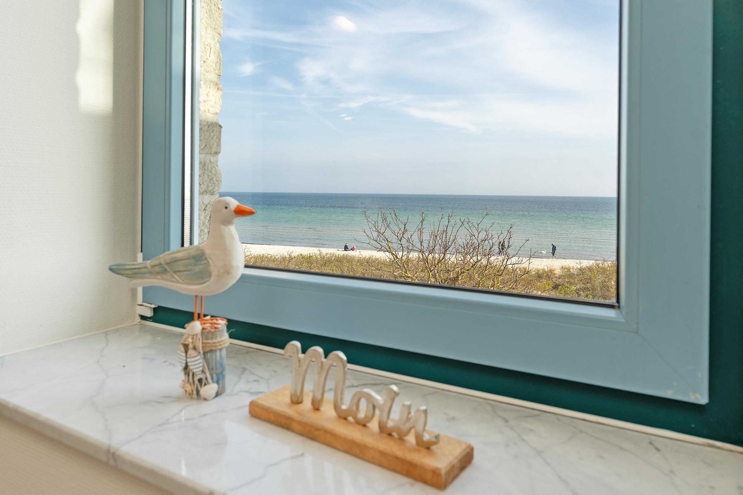 Strandnahe Ferienwohnung mit Balkon und Meerblick auf Fehmarn, ideal für erholsamen Ostseeurlaub.