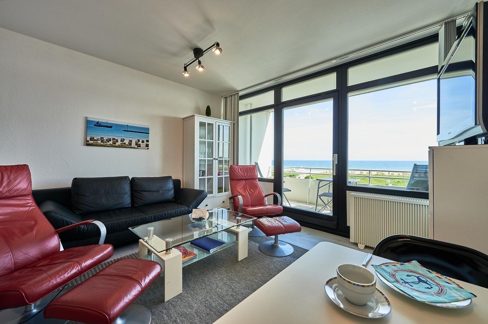 Moderne Ferienwohnung auf Fehmarn mit Balkon und Meerblick, nur 100 Meter vom Strand entfernt.