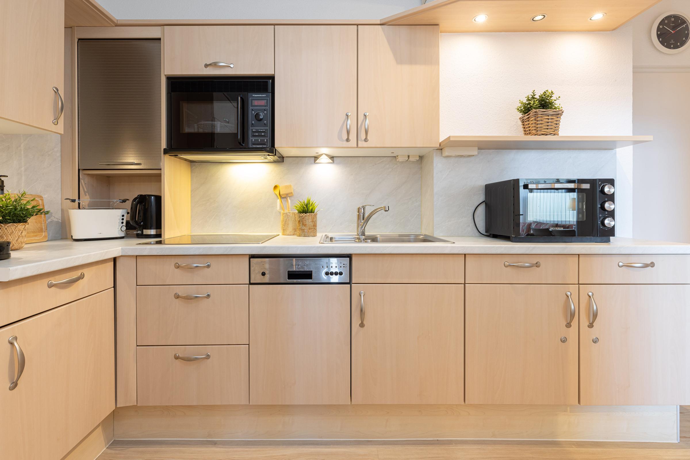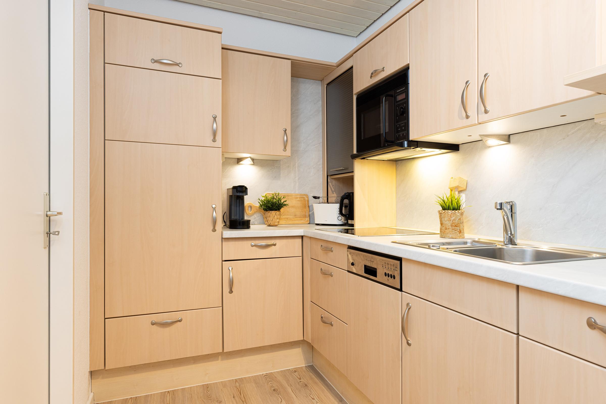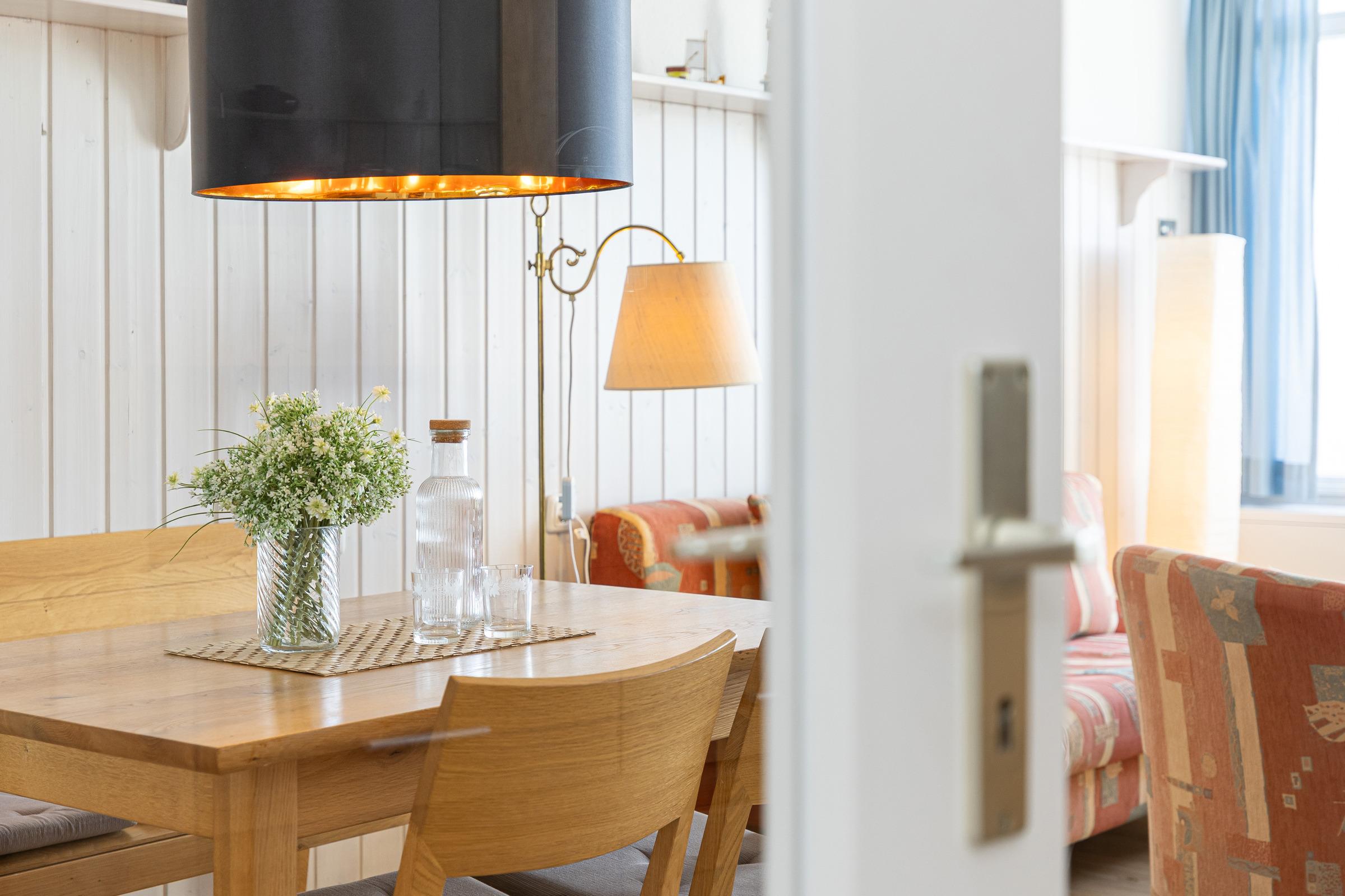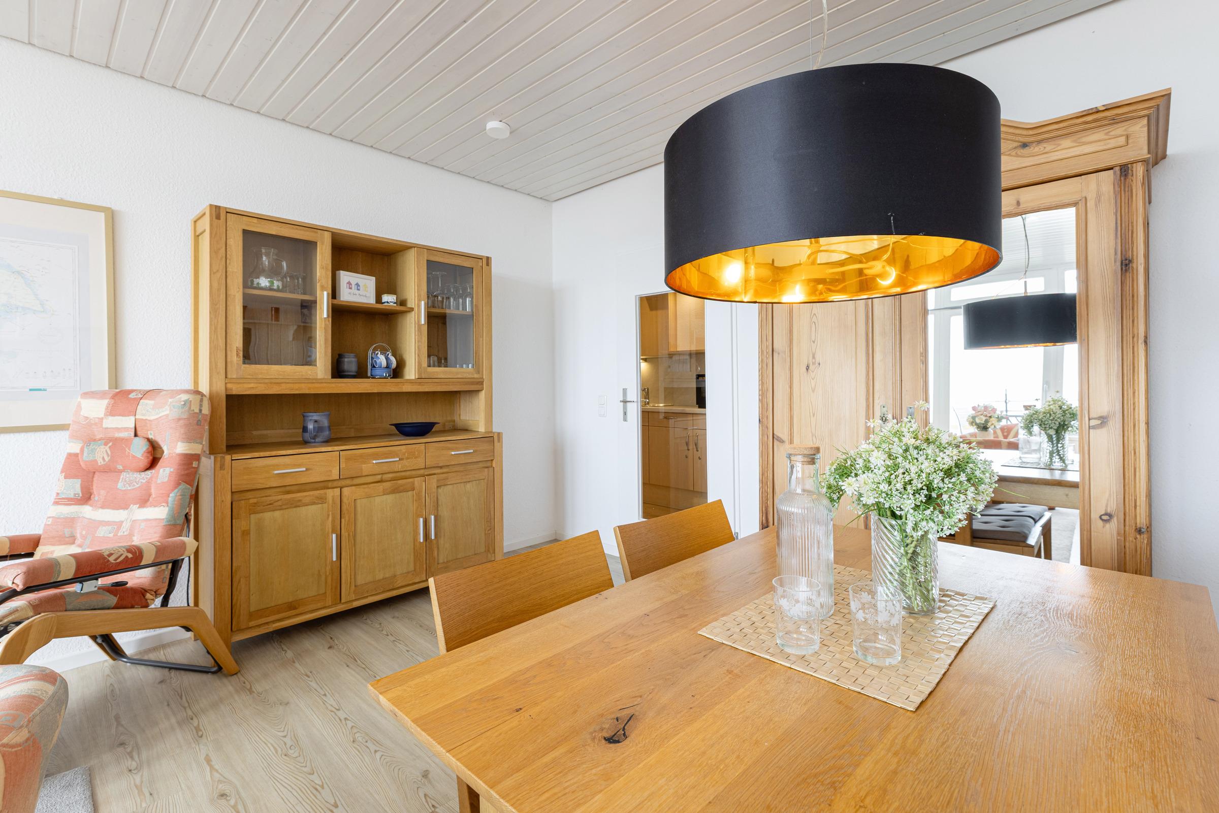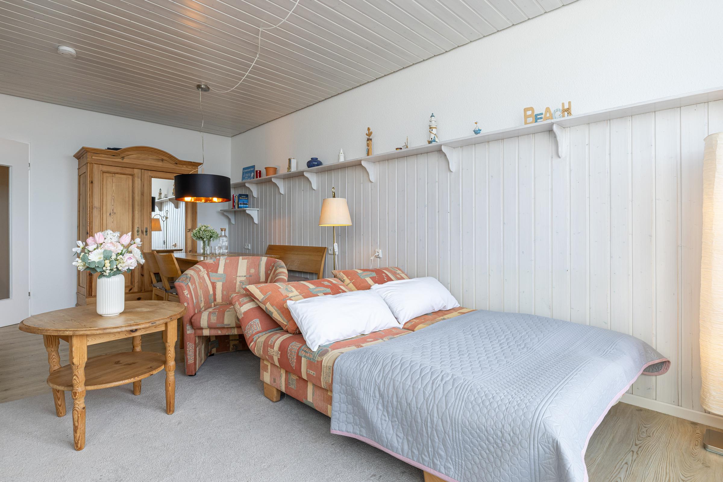 Herzlich willkommen im Urlaub! Das Wohnzimmer mit großer Fensterfront und möbliertem Südbalkon bilden die Highlights dieses Apartments. Genießen Sie den tollen Blick aufs Meer und lassen Sie den Alltag hinter sich. Morgens haben Sie die Möglichkeit, gemütlich zu frühstücken und dabei die Kutter und Segelboote zu beobachten, die langsam die Hafeneinfahrt aus- und einfahren – das ist Entschleunigung pur. Im Wohnzimmer befindet sich zudem der Essbereich. Zum Fenster hin lädt die gemütliche Sitzgruppe mit Schlafsofa zum Entspannen, Lesen und Fernsehen ein. Das Schlafsofa lässt sich zu einem vollwertigen Doppelbett ausziehen. Die gut ausgestattete Küche mit Geschirrspüler und weiteren Extras ist ideal, um Ihre Lieblingsspeisen zuzubereiten. Das Schlafzimmer ist möbliert mit einem Doppelbett und einem großen Kleiderschrank. Das Duschbad hat eine Fußbodenheizung und einen Handtuchwärmer.