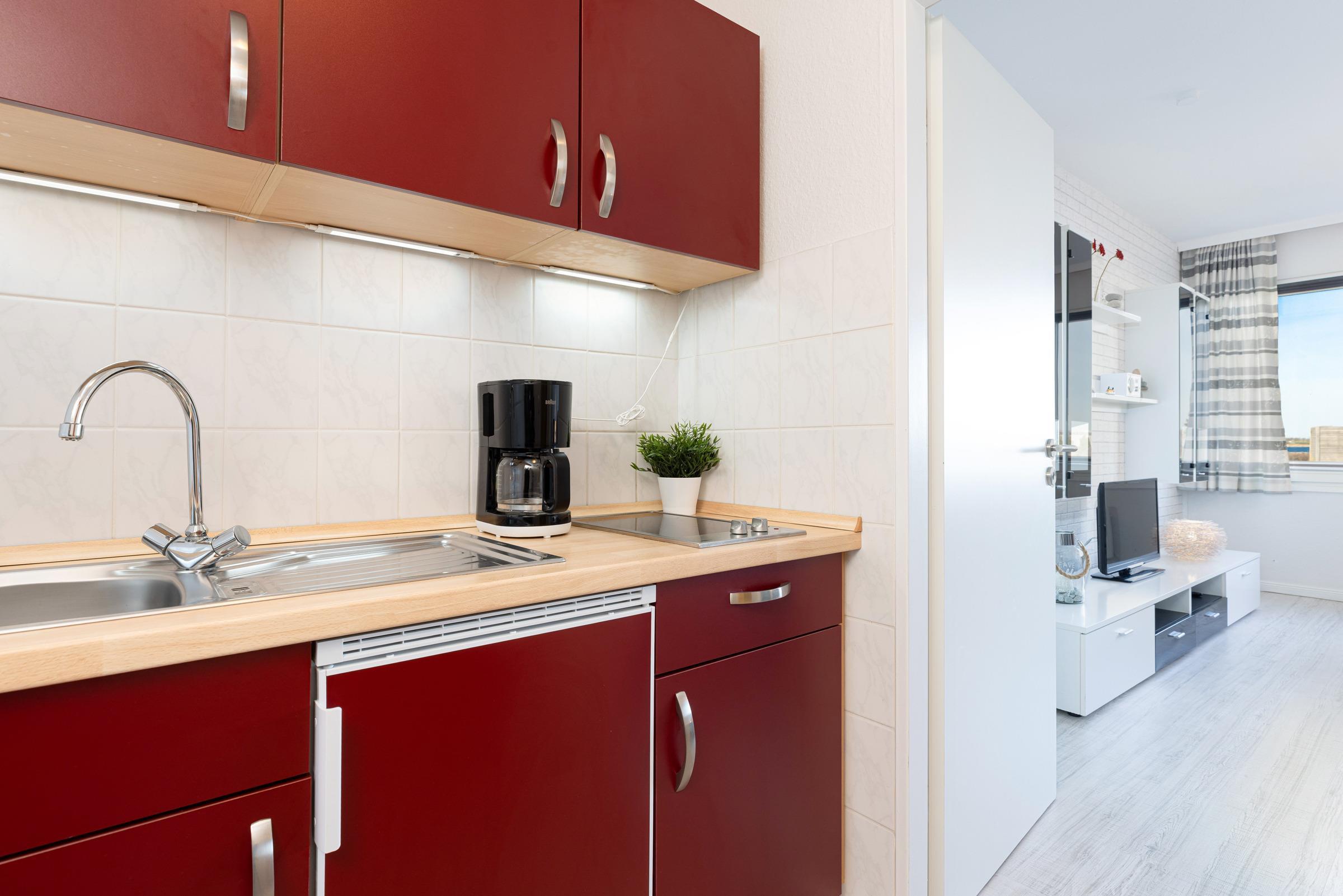 Dieses gemütlich eingerichtete Appartement bietet genau den richtigen Entspannungskomfort. Der Wohnschlafraum verfügt über ein Doppelbett sowie eine schöne Essecke. Hier können Sie Ihre Mahlzeiten zusammen einnehmen, Pläne für Ihren Urlaub schmieden, lustige Spieleabende genießen oder vor dem TV-Gerät entspannen. In der kleine Küche können Sie Ihre Lieblingsspeisen müheloszubereiten. Nach einem schönen Tag auf der Sonneninsel nächtigen Sie entweder im Wohnschlafraum oder im separaten Schlafzimmer, in dem zwei Einzelbetten stehen. Im Kleiderschrank findet Ihre Urlaubsgarderobe Platz. Das innenliegende Duschbad ist hell gefliest.