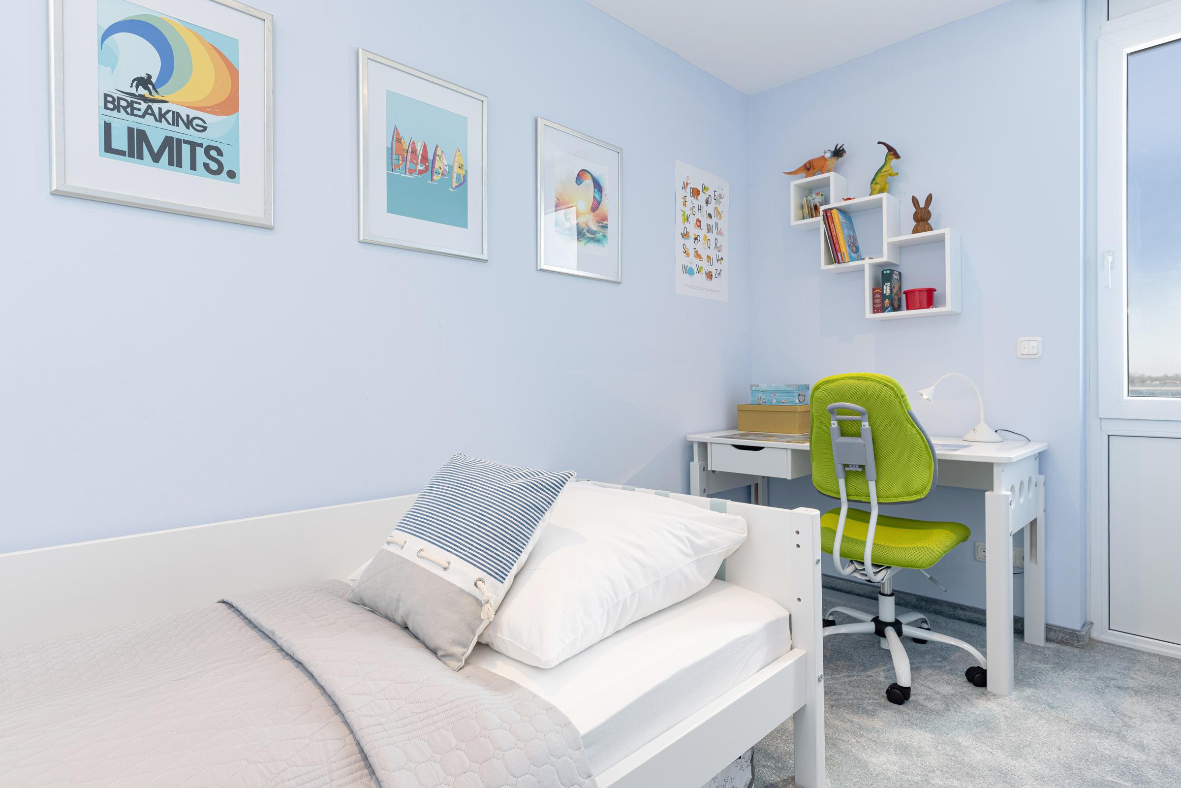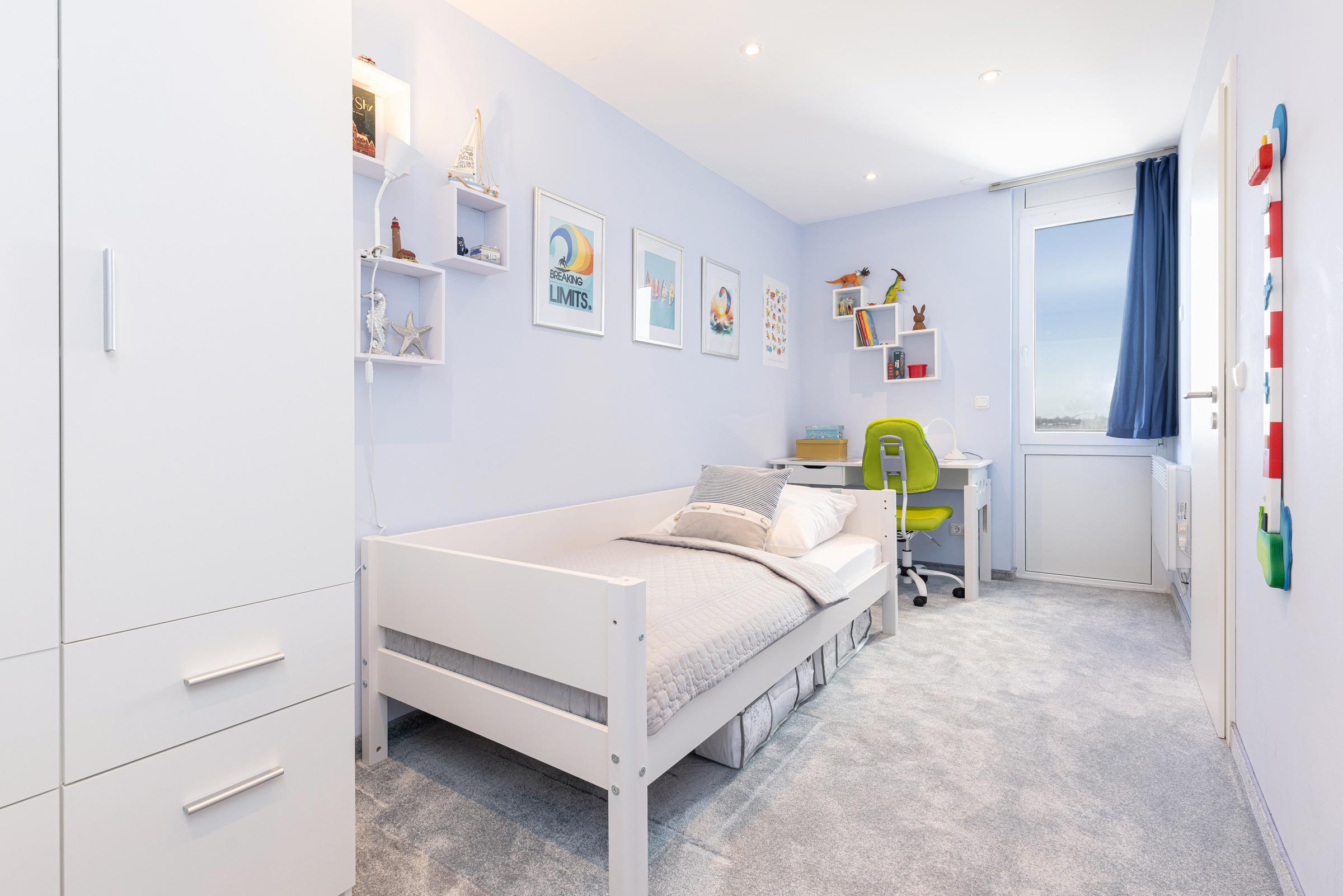 Schlafzimmer: 1 Einzelbett (ca. 90x200 cm), Verdunkelung: Gardinen, kein Platz für ein Babybett vorhanden