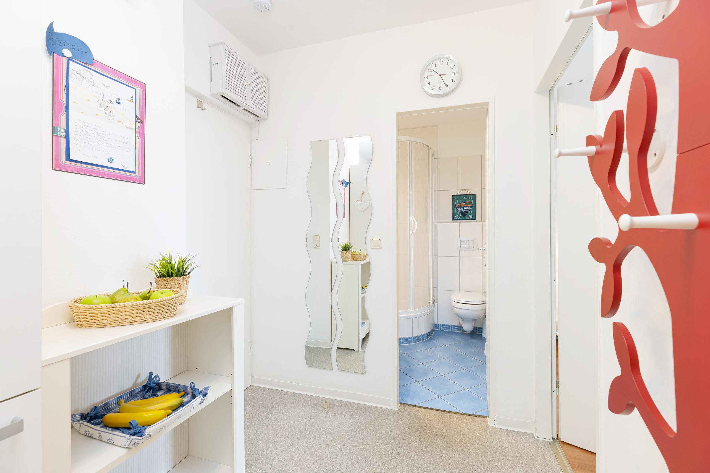 Der feinsandige Südstrand mit zahlreichen Eisdielen, Cafés und Bäckereien ist innerhalb einer Minute zu Fuß zu erreichen. Hier können sich die Kinder austoben, baden und Sandburgen bauen oder einfach mit Ihnen die Sonne genießen. Auch in unmittelbarer Nähe zur Wohnung liegen mehrere Kinderspielplätze und Wiesen zum ausgiebigen Toben. Direkt am Südstrand können auch kleine Einkäufe getätigt werden.