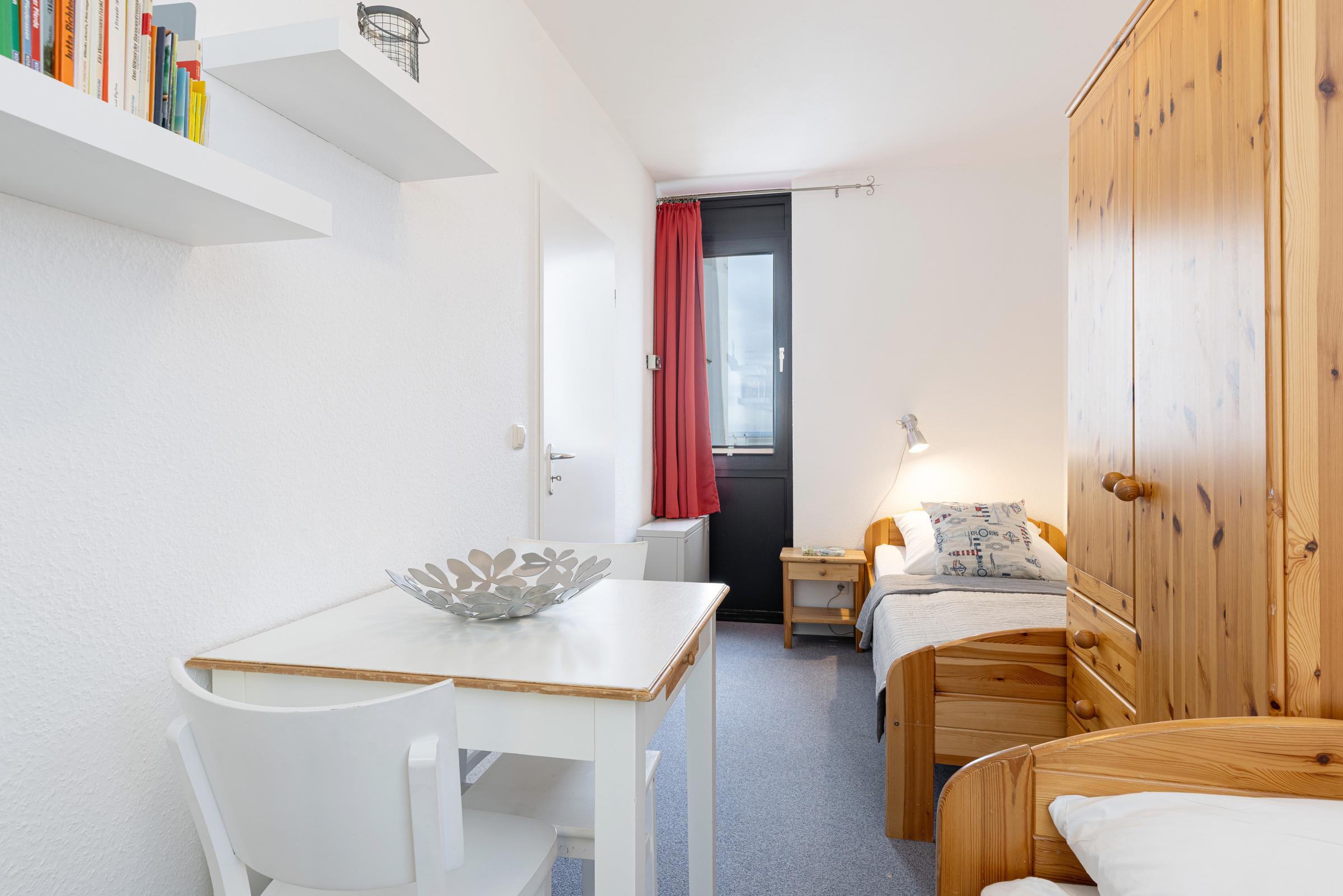 Schlafzimmer: 1 Einzelbett, Kleiderschrank, kein Platz für ein Babybett vorhanden