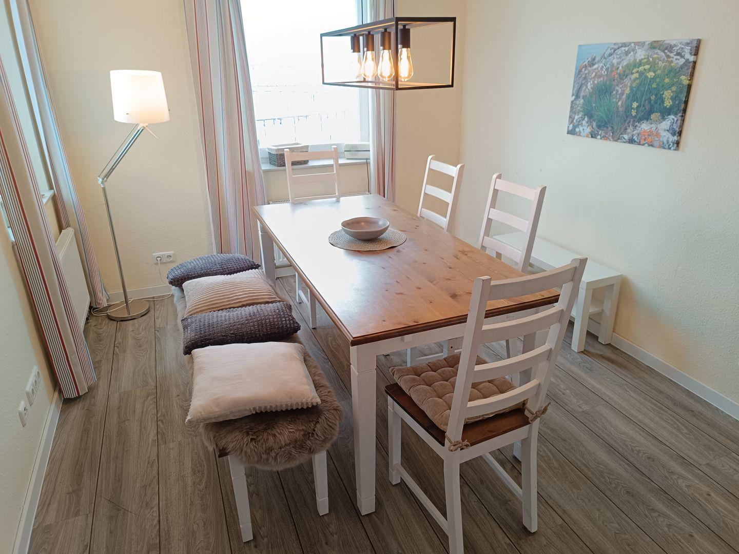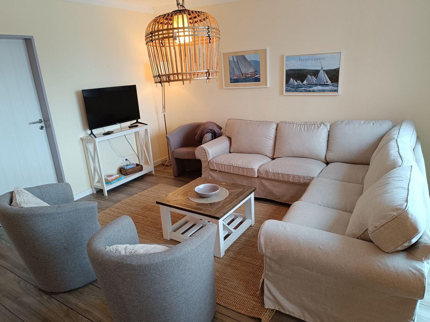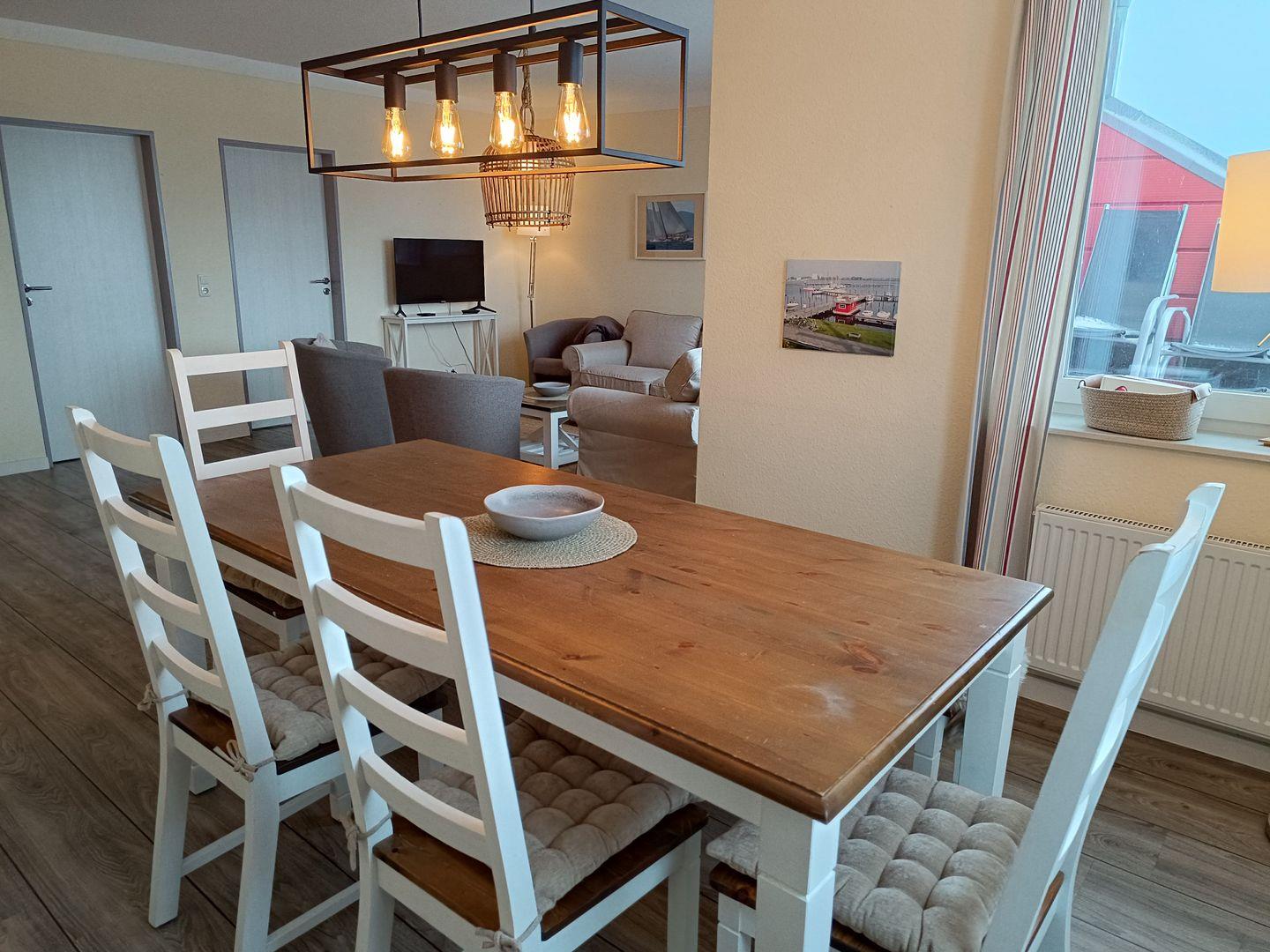 Diese Wohnung ist die größte Wohnung im Rundsteggebäude und lässt sich durch die Wohnung 06 gut ergänzen um von 8 auf 13 Personen zu erweitern. Zwischen beiden Wohnungen gibt es sogar einen separaten Balkon. Die Wohnung verfügt über 3 separate Schlafzimmer mit jeweils 2 Einzelbetten (90x200), die auch zu einem Doppelbett zusammengestellt werden können. Der große Wohnzimmersalon hat neben einer gemütlichen Sofaecke welche zum Schlafsofa 160x200cm umfunktioniert werden kann auch eine große Sitzecke für 8 Personen. Im Objekt befindet sich ein festes w-lan Netzwerk, in der Wohnung ein smart TV. Der Balkon ist zum Hafen ausgerichtet. Von hier kann man nicht nur dem Hafengeschehen zusehen sonder auch wunderbar nach Burgstaaken oder zur Hafeneinfahrt zum Sonnenuntergang schauen. Ein Glas Wein im Sonnenschein - hier wird es wahr. Die kleine Versorgungsbar mit Kühlschrank, Tiefkühlschrank, Mikrowelle, Kochfeld, Kaffeemaschine, Wasserkocher, Eierkocher, Toaster uvm. bietet die Möglichkeit sich schnell etwas zu zaubern. Für größere Essen bietet der Südstrand genügend Restaurationen an. Ein Duschbad ist ebenfalls vorhanden.