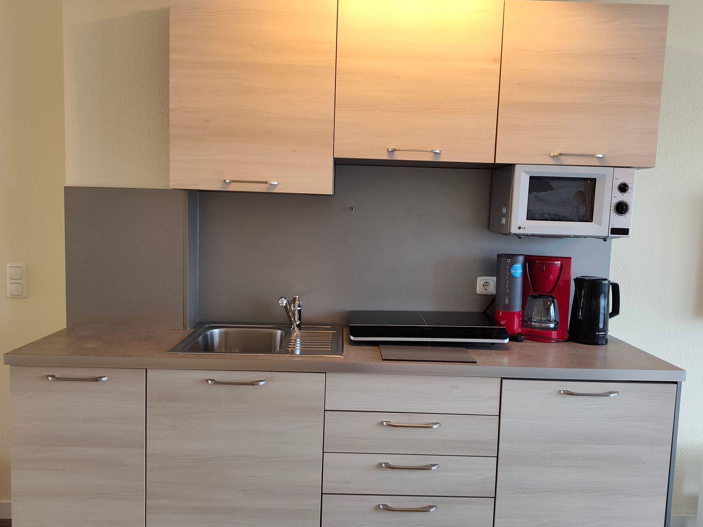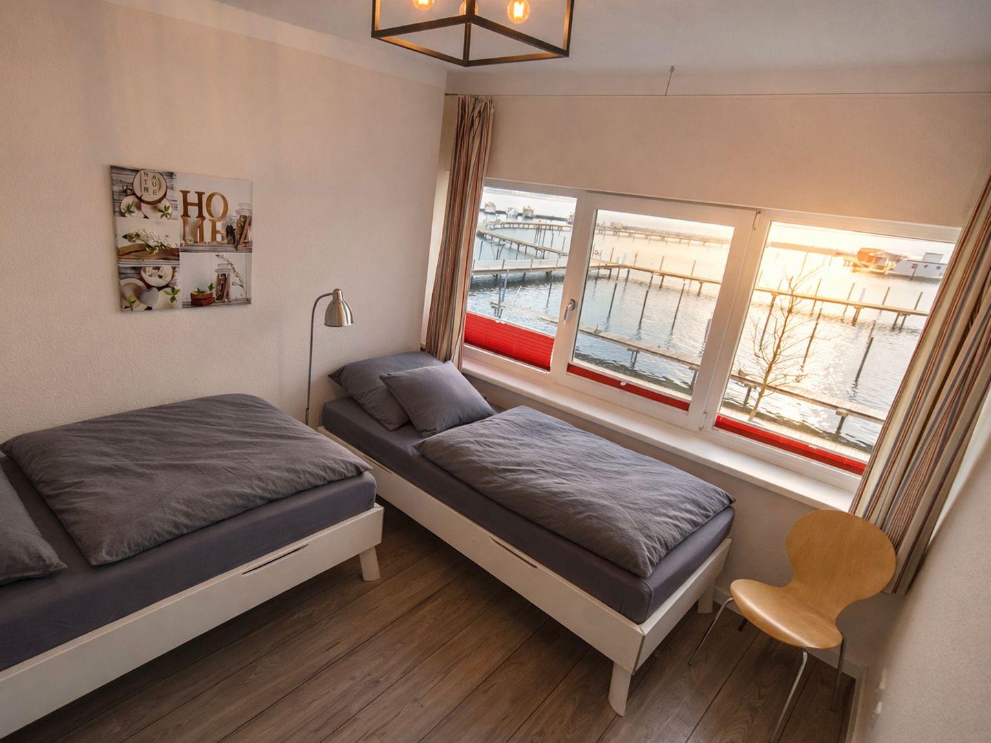 Die Wohnung ist hell und lichtdurchflutet und wie die anderen Wohnung sowohl nach Norden und Süden mit Fenstern verwöhnt. Sie besteht aus zwei separaten Schlafzimmern, einem Wohn-/Schlafraum und einem Badezimmer. Keiner muss durch den Schlafraum des Anderen zur Toiletten, da ein kleiner Flurbereich alle 3 Räume ideal trennt. Das Schlafzimmer nach Süden besteht aus einem Doppelbett, das Schlafzimmer nach Norden aus zwei Einzelbetten, die entweder als Doppelbett zusammengeschoben werden können oder als L-Form mit Abstand für zwei Kinder ideal ist. Die Wohnung ist folglich Top für Familien mit 2 Kindern oder für 2 Pärchen, die sich eine Wohnung teilen möchten. Im Wohn-/Schlafraum lässt sich das Sofa auf 140x200cm ausziehen und bietet für eine weitere Person einen idealen Schlafplatz. Im Objekt befindet sich ein festes w-lan Netzwerk, in der Wohnung ein smart TV. Die Sitzecke ist im Südflügel der Wohnung und bietet für alle ausreichend Platz zum Sitzen. Die Versorgungsbar ist mit Mikrowelle, Cerankochfeld, Kühlschrank und ausreichend Geschirr ausgestattet. Einen Toaster und eine Kaffeemaschine sind selbstverständlich vorhanden. Ein eigener PKW-Stellplatz ist direkt vorm Haus kostenfrei und W-LAN in der gesamten Wohnung gut zu empfangen.