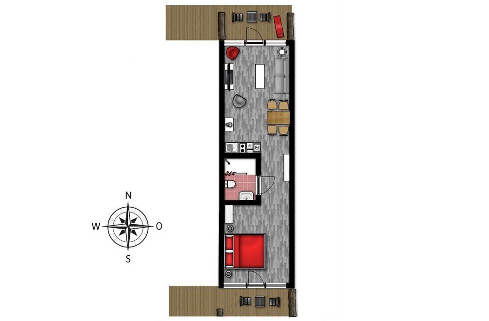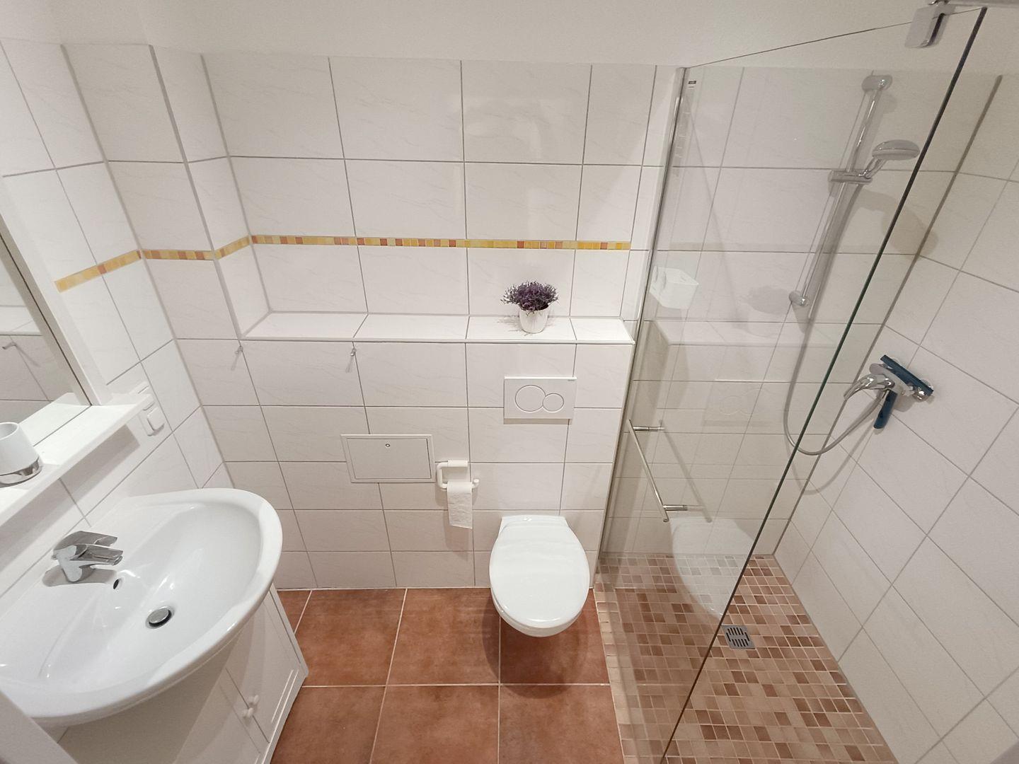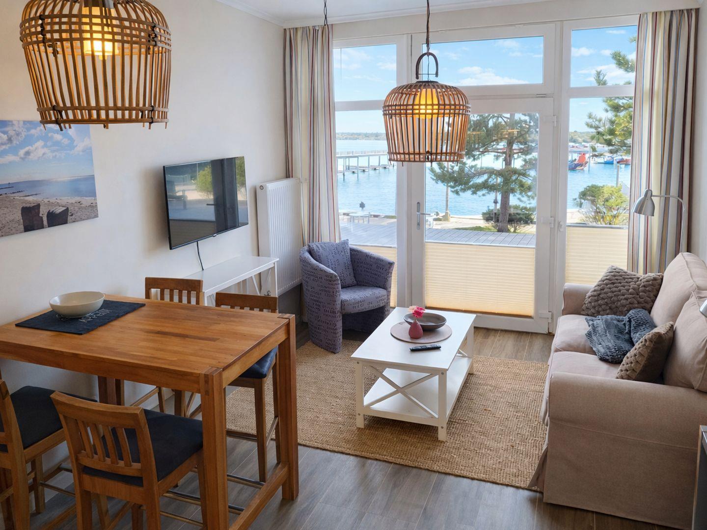 Sie besteht aus einem Wohnzimmer mit Essecke mit 4 Sitzplätzen, einer Versorgungsbar mit Kühlschrank, 2 Platten-Ceran-Feld, Mikrowelle, Kaffeemaschine, Toaster und einem Schlafzimmerbereich mit Doppelbett. Das Besondere ist der einmalige Blick auf die neu gestaltete Hafenpromenade mit eigener, abgetrennter Holzterrasse. Vom Sofa schaut man auf die Schiffe im Hafen mit all seinem maritimen Flair. Im Objekt befindet sich ein festes w-lan Netzwerk, in der Wohnung ein smart TV. Das Badezimmer besticht durch seine ebenerdige Dusche und ist somit auch für gehbehinderte Menschen nutzbar. Der kostenfreie, neugestaltete PKW-Stellplatz ist direkt vor der Tür.